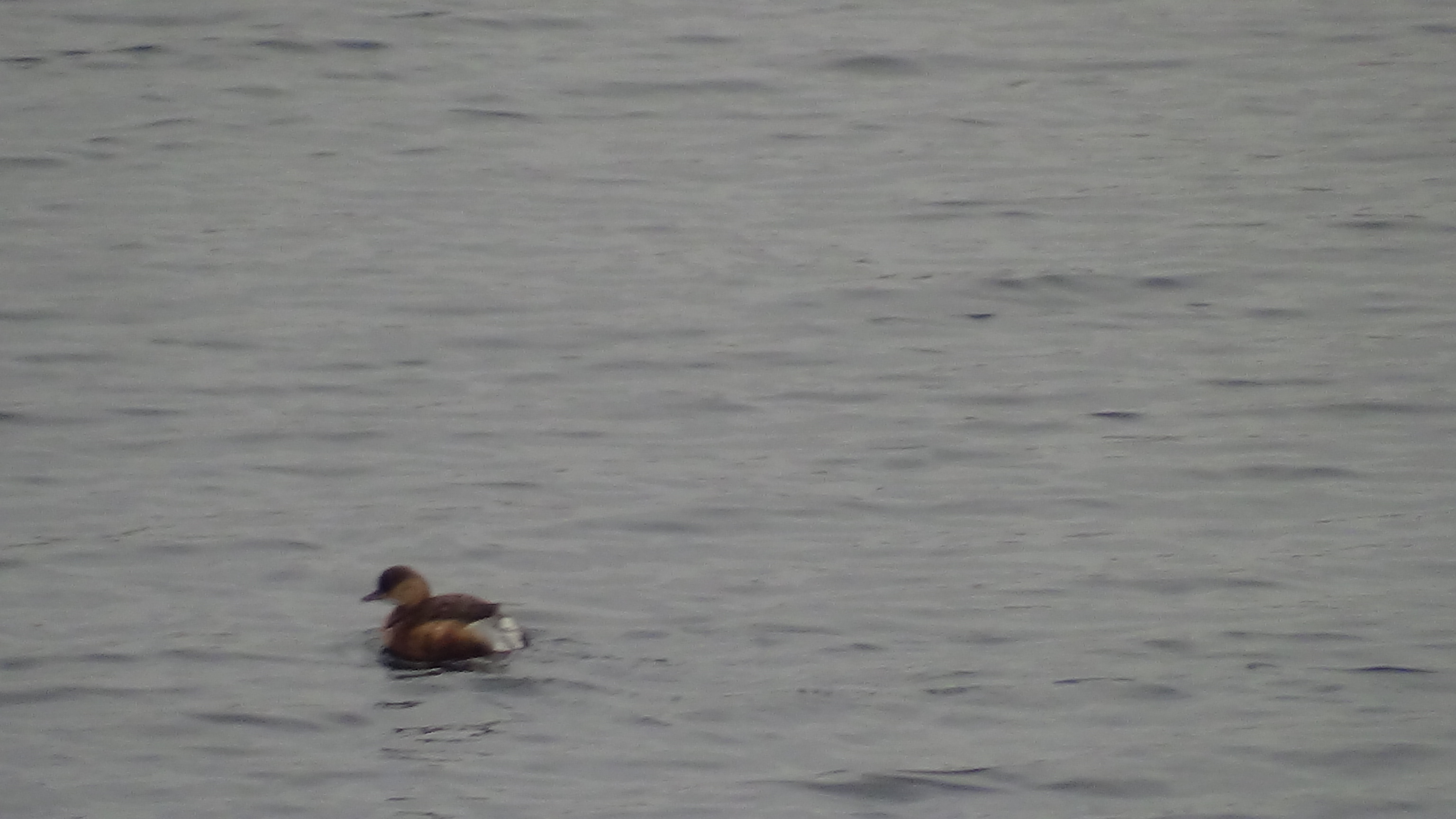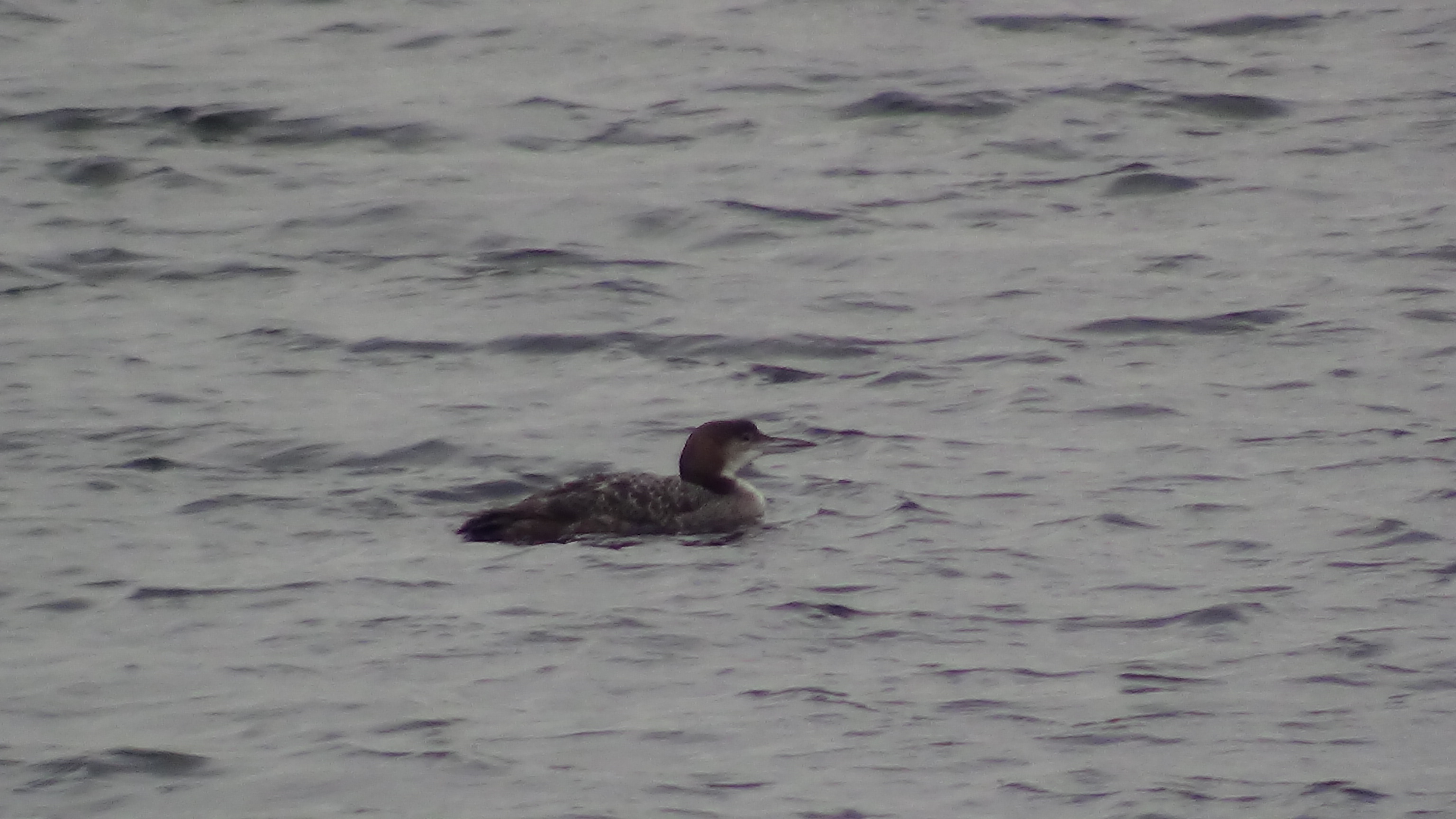 First sightings include Gadwall, Shoveller and Tufted Ducks on the bank. 3 Little Grebes and a Great Crested grebe are also present, but despite scanning the water there is no sign of a diver. I continue along the causeway and then I spot a large bird close into the causeway on the Northern reservoir. Surprise, no distant view but really close and very confiding as it bobs along the water coming towards me. It gets level and I get some photos and then walk with it as it continues back towards the Stanwall end. Eventually it tires of my company and makes its way out from the bank. Now if only all birds were that easy.