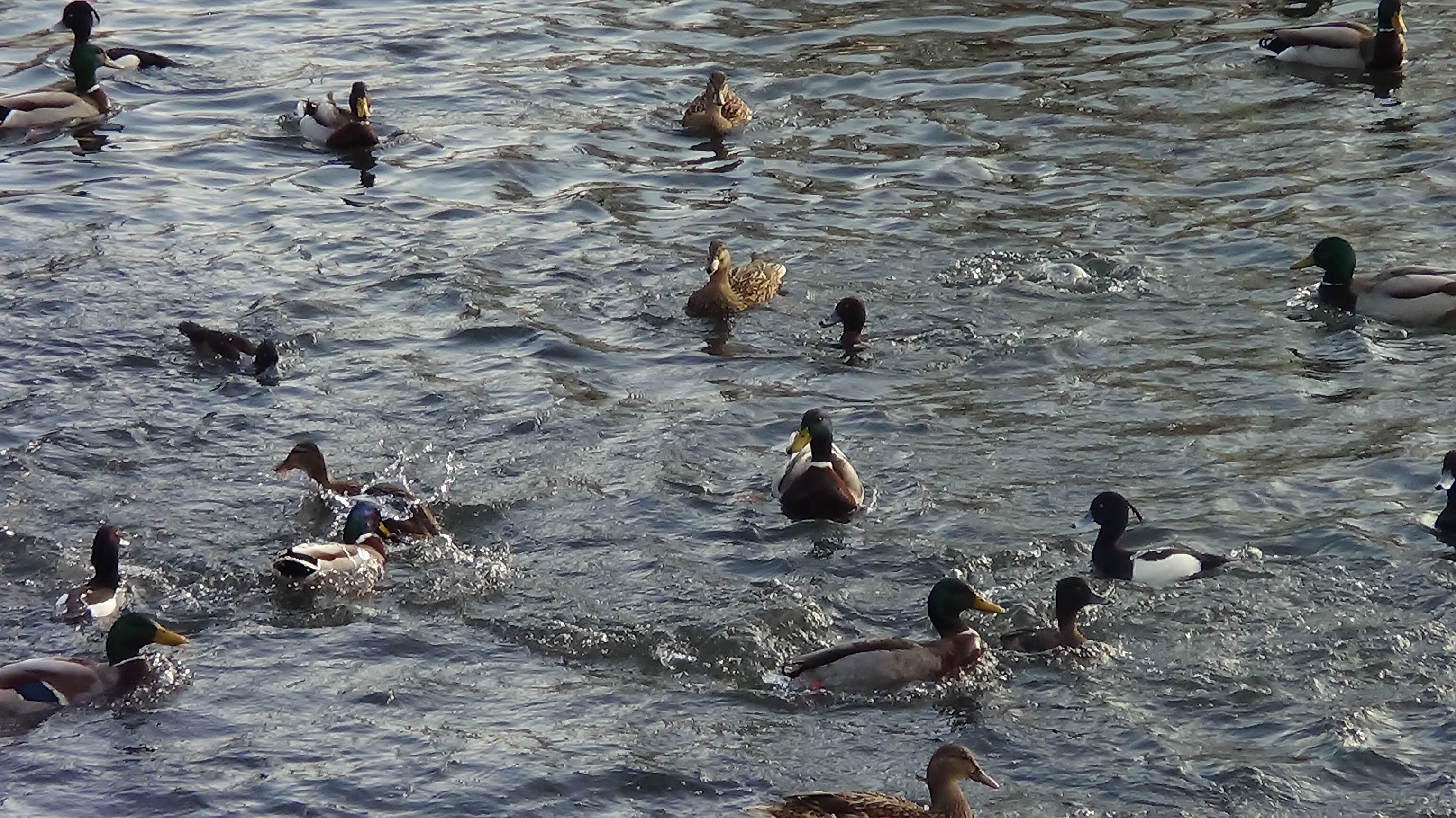 The usual cast of suspects was present on the Lake. Nice to see 3 Gadwall and 3 Little Grebe. Some one feeding bread to the Mallard caused a feeding frenzy with ducks appearing from all points of the lake eager to join in.