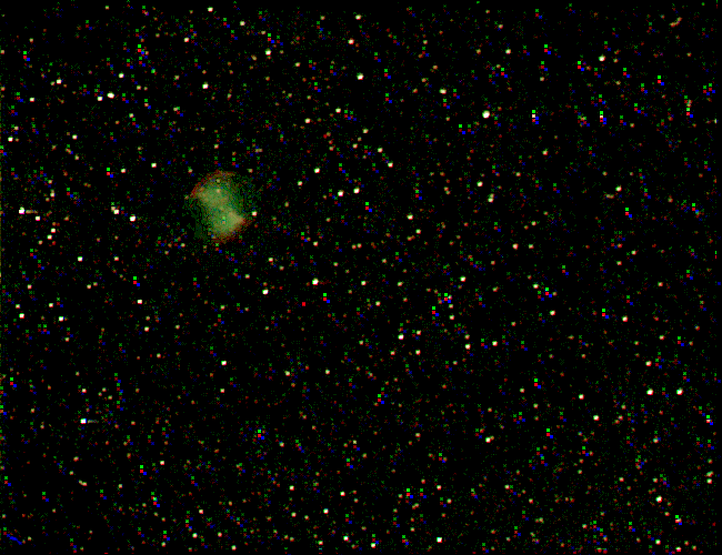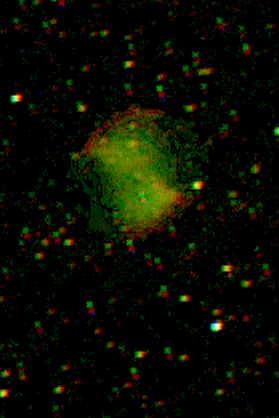 The Dumbbell Nebula (also known as M 27, or NGC 6853) is a planetary nebula in the constellation Vulpecula, at a distance of about 1,360 light years from the Earth. Its central star, a white dwarf, is the largest white dwarf yet discovered.