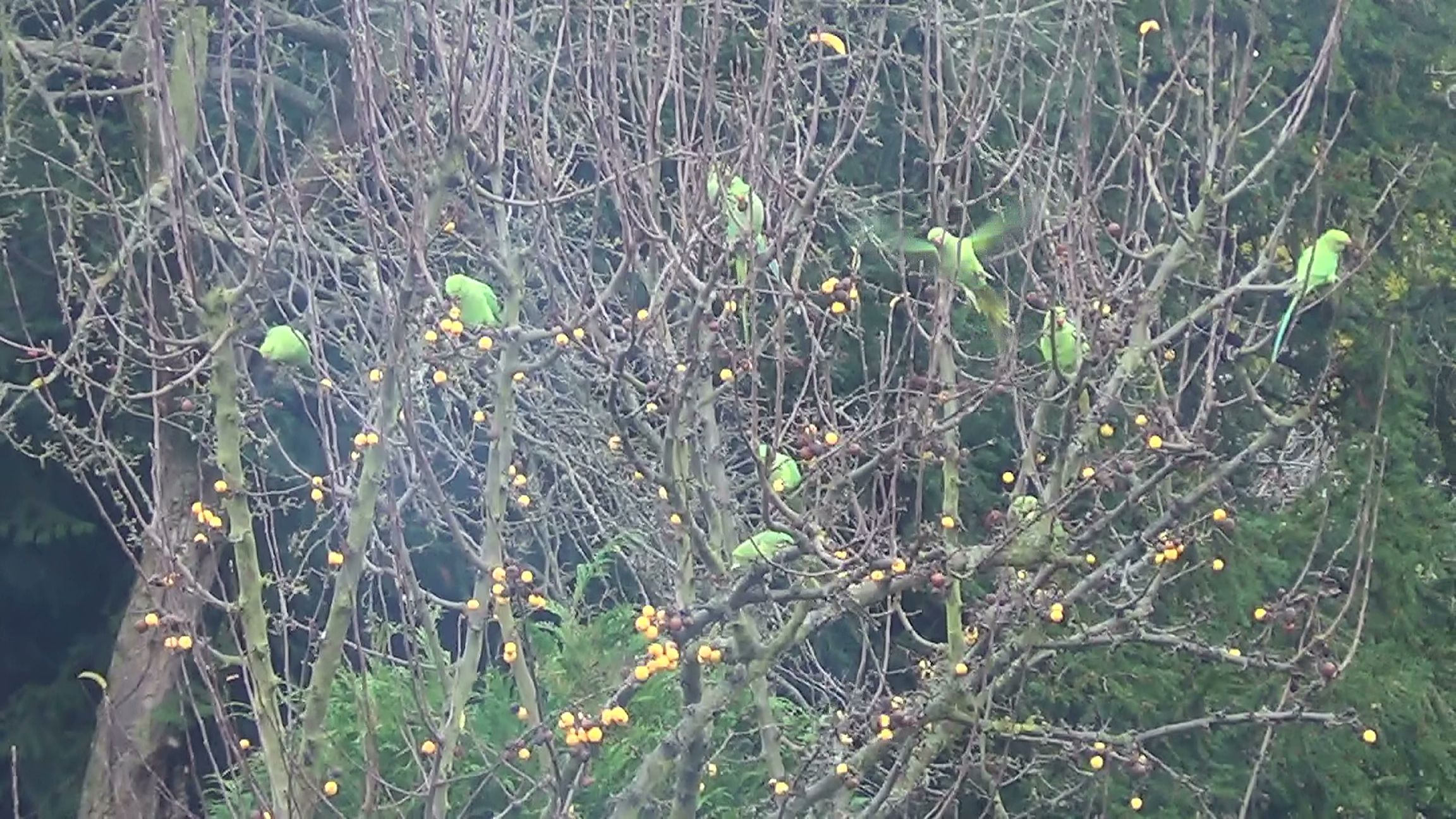 Originally from Africa and southern Asia and kept as caged birds, some Rose-ringed Parakeets (aka Ring-necked Parakeets) escaped and by the 1970s started breeding in south-eastern England. One unlikely story says that a small number escaped from Isleworth Studios in 1951 during the making of ‘The African Queen’, another that Jimi Hendrix released them to ‘bring some psychedelic colour to London’s skyline – The total UK population is estimated at 30,000 birds. The largest roost is at Esher, Surrey which holds up to 7000 birds. My local roost at Hither Green is estimated at 3000 birds.
