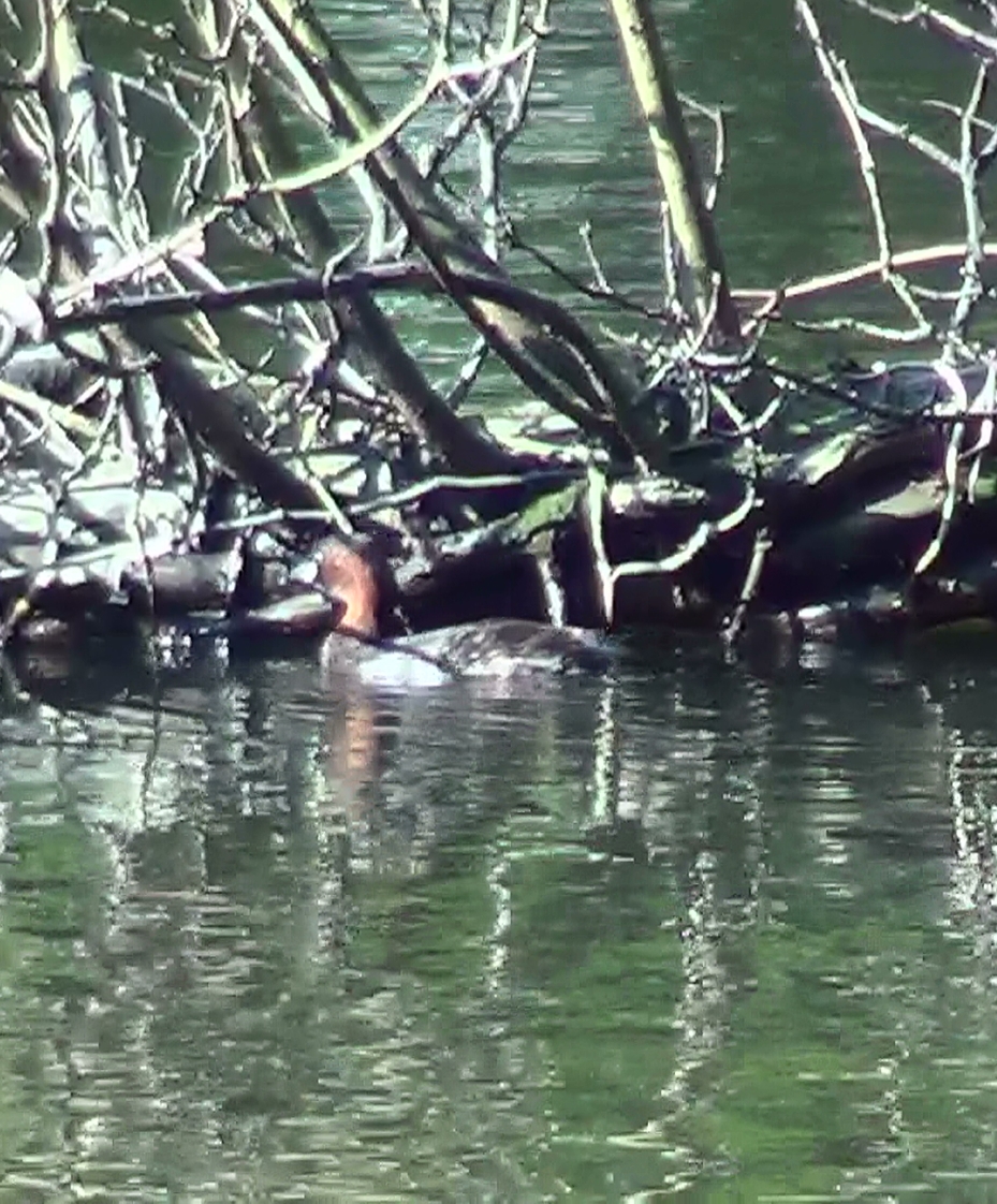 Alongside one of the Islands I saw a bird and at first thought it was a young coot or Moorhen but once located in the binoculars it turned out to be a stunning Little Grebe in breeding plumage.