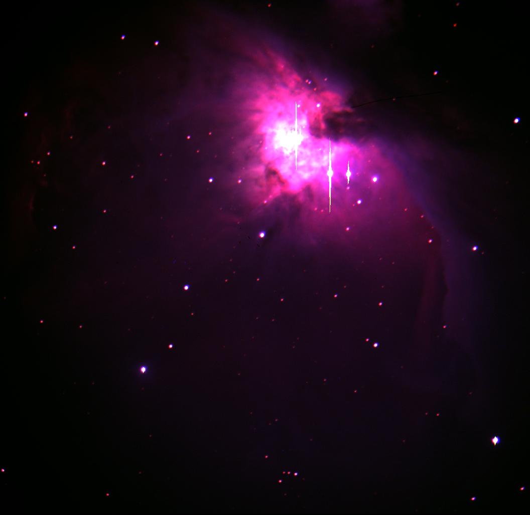 The Orion Nebula (also known as M42, or NGC 1976) is a diffuse nebula located in the constellation of Orion. It is one of the brightest nebulae, and may be visible to the naked eye in the night sky. It is located at a distance of 1,344 light years from Earth