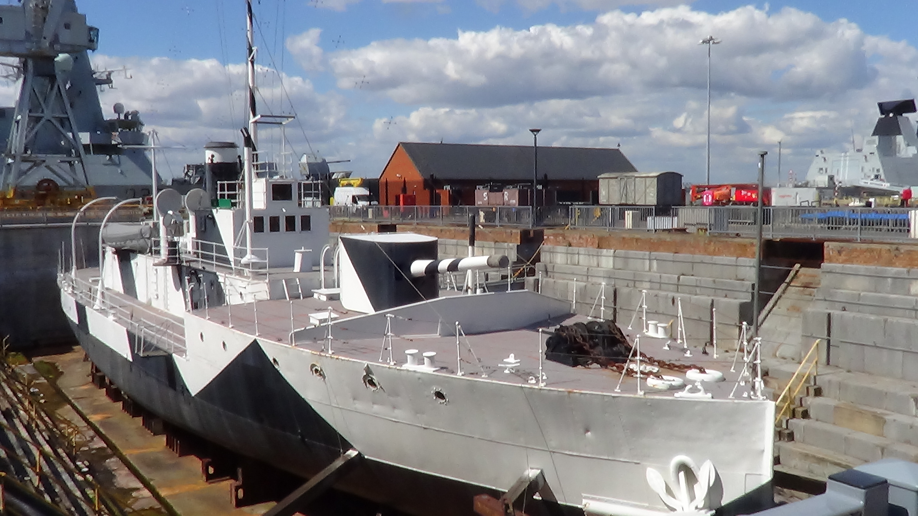Monitor 33 is a First World War gunship, built to bombard coastal positions from the sea. She is one of the few such vessels surviving. One interesting aspect is her camouflage, which is not designed to render her ‘invisible’ but specifically to confuse the range finding systems of the day so that land and sea-based artillery would find it difficult to fix her and accurately direct directly there gunfire.