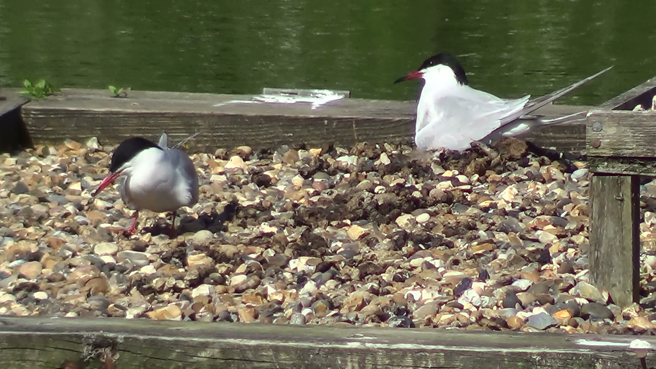 There are three common Tern nests on the provided rafts and the total of four birds were present during my visit.