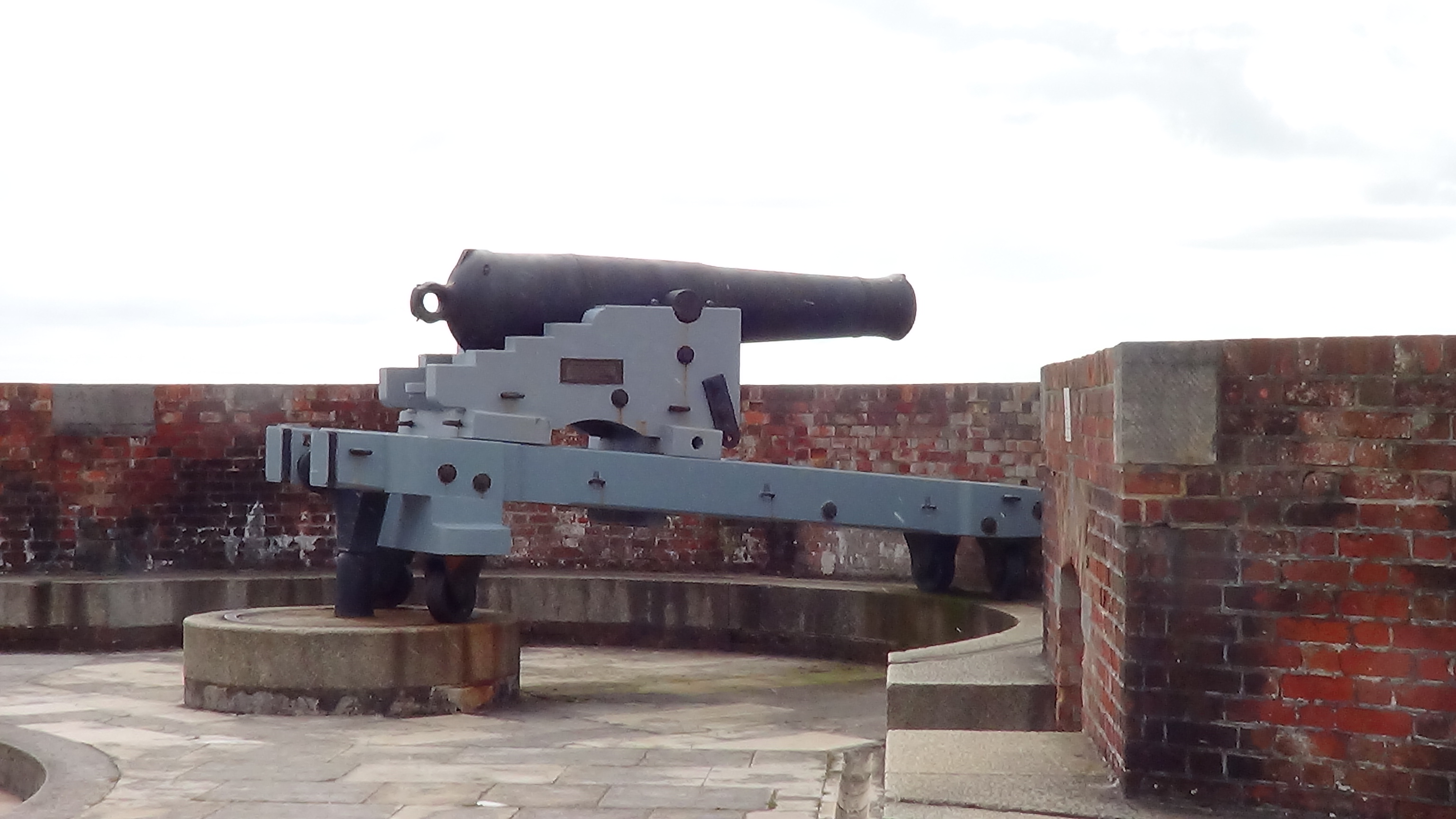 A 9 inch RML gun from 1868. This was one of the first rifled muzzle loading gunsand guns like this may have been stationed at Southsea Castle. The one currently on display was taken from an artillery battery on the Isle of Wight.