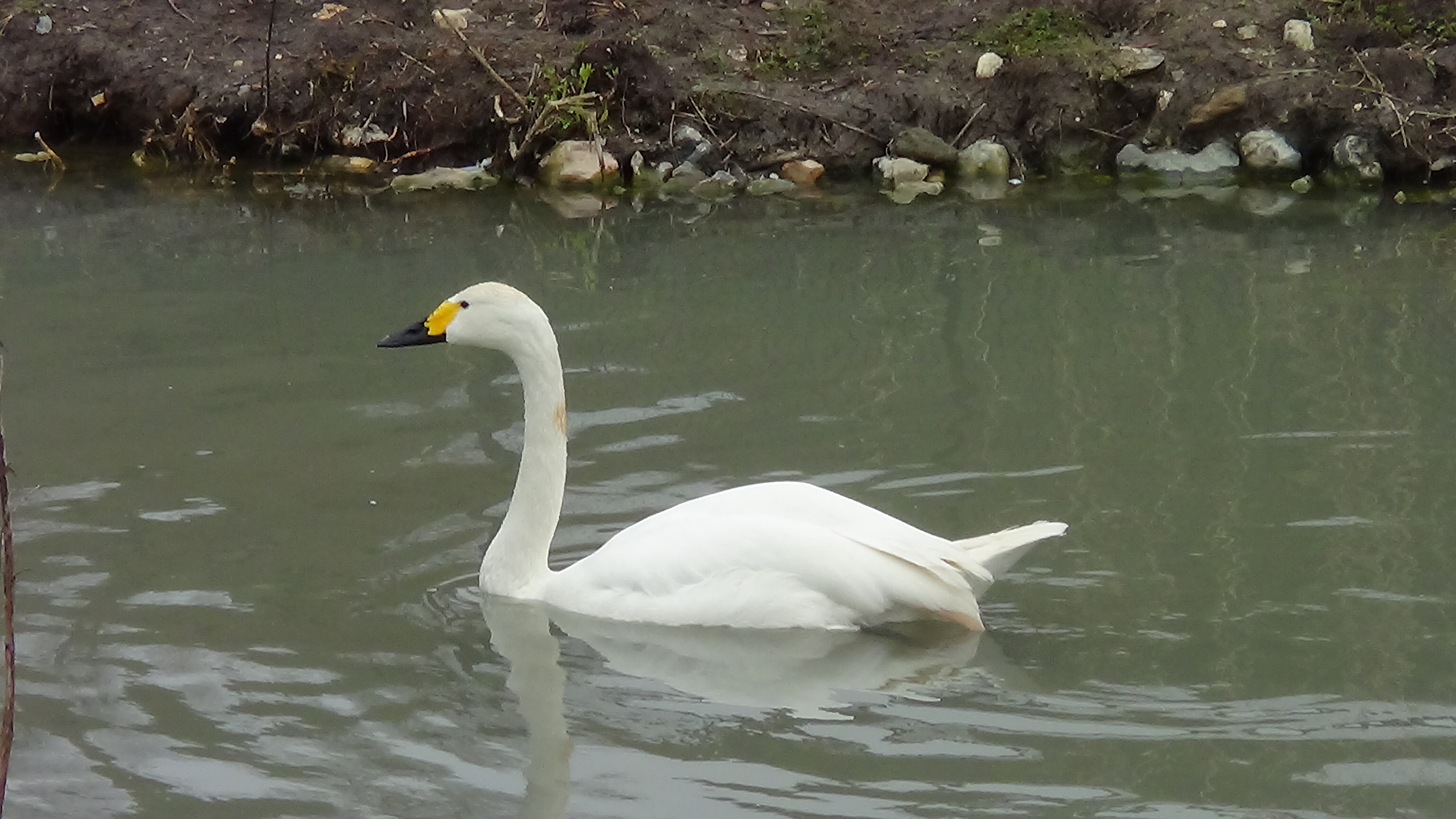 The Bewick’s Swan is a winter visitor to the UK. They can be distinguished from the resident Mute Swan by the yellow on the bill rather than the orange of the Mute and from Whooper Swans by the yellow area being limited to the facial end of the bill.