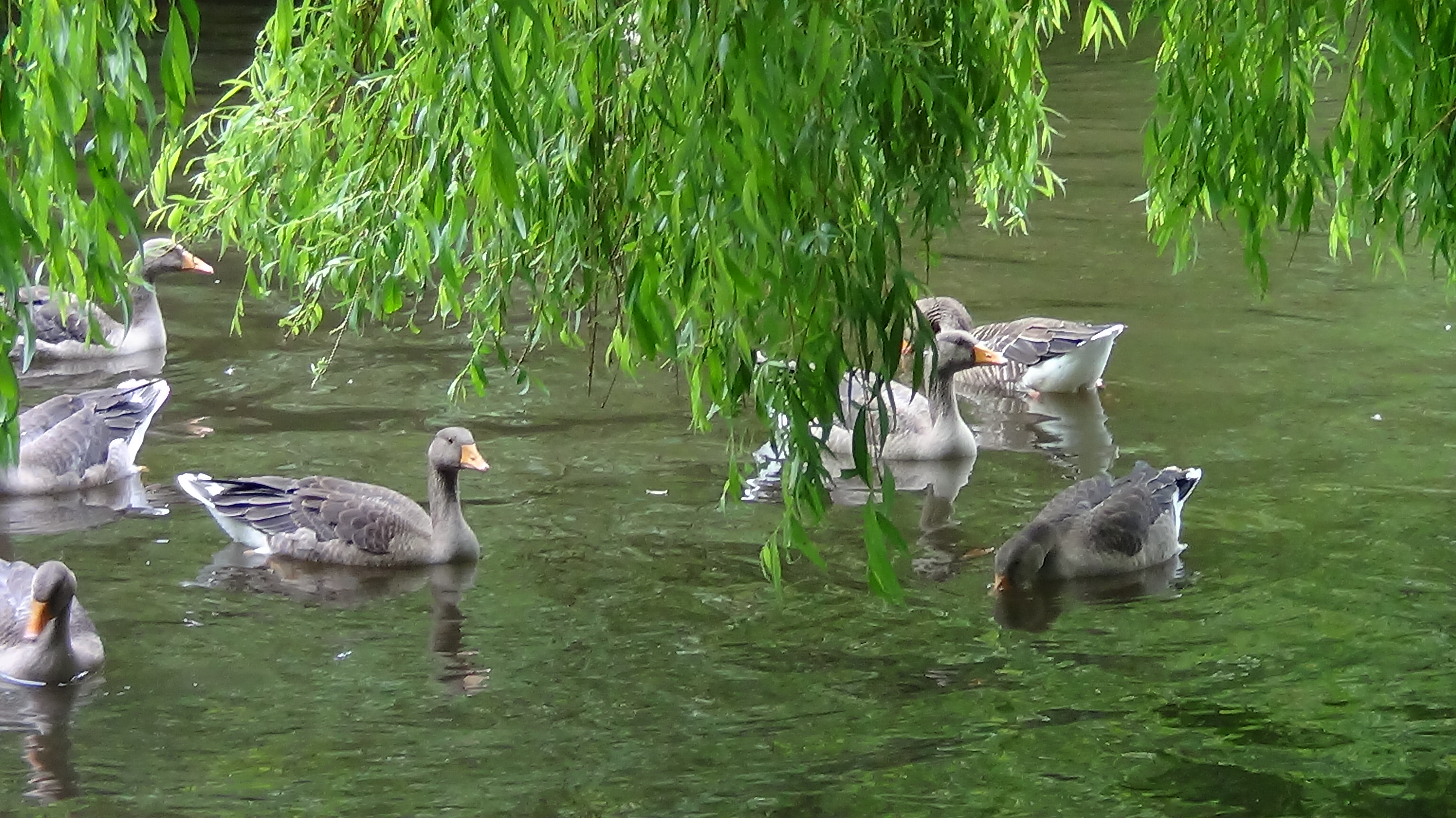Working at home most of today – 4 Swifts over garden mid-morning and a brief view of Green Woodpecker as it flew through were the garden highlights. Went for lunchtime walk around the Tarn. The Canada and Greylag Geese have been very successful with their broods this year and neither seem to have lost any youngsters and these are now nearly adult size and fast taking on adult plumage.