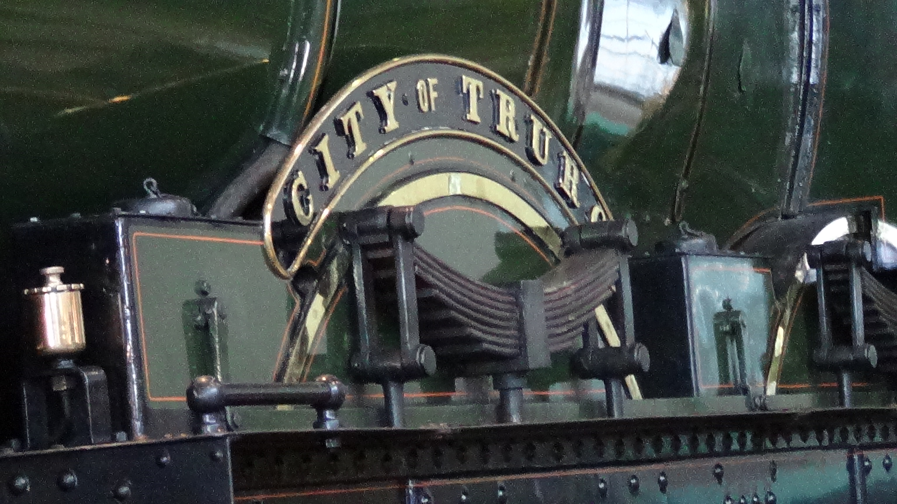 City of Truro was a class 4-4-0 engine built for the GWR. It left Swindon works in 1903 and worked a variety of different duties. It was one of the first locomotives to reach 100mph, when in May 1904 it was timed at 8.8 seconds between quarter mile posts – this equates to a speed of 102.3 mph.