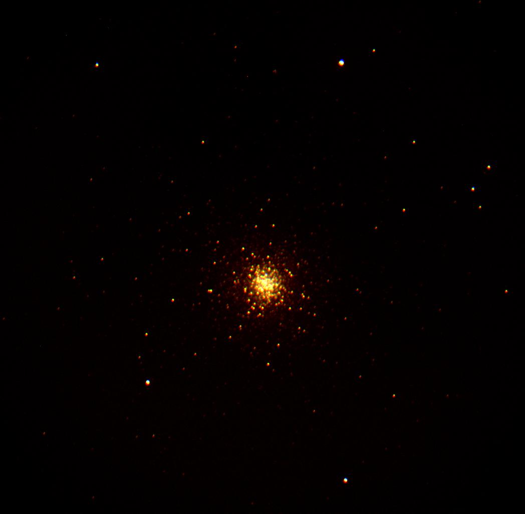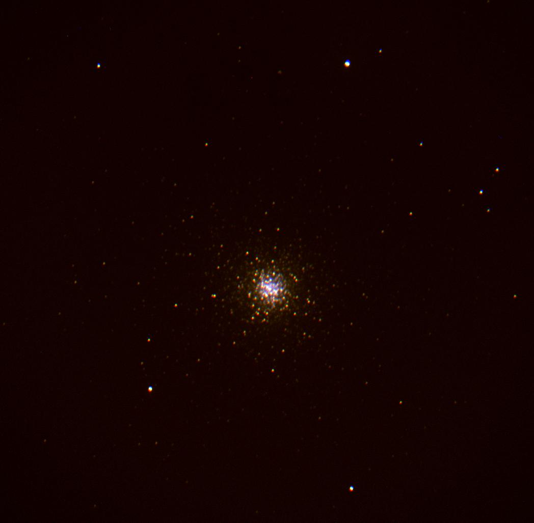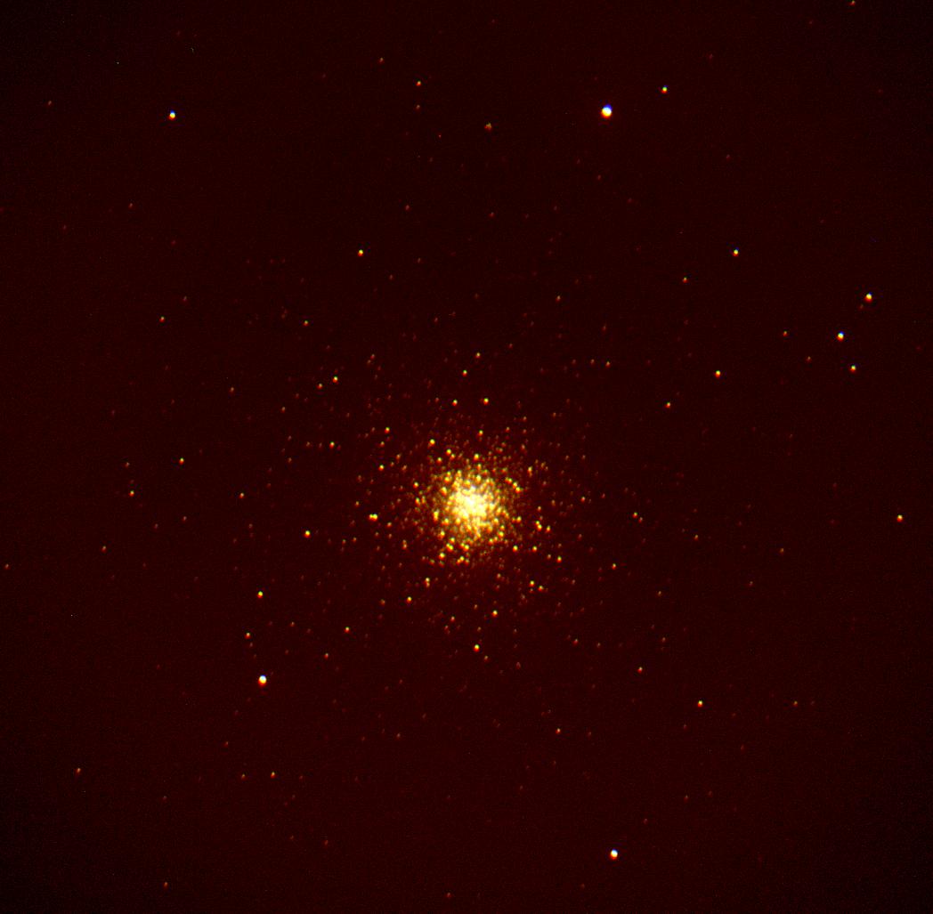 Messier 3 (aka NGC5272) is a large globular cluster. It is estimated to contain approximately half a million stars. it is 39,900 light years from Earth. It has become one of the most studied clusters in the sky, primarily due to the large population of variable stars it contains. Variable stars are stars which when observed from Earth appear to fluctuate in brightness. There are two potential reasons for this – firstly that the actual brightness of the star fluctuates in the amount of light emitted or secondly because although the amount of light emitted from the star is constant, the amount of light reaching the Earth varies due to something blocking its transmission.