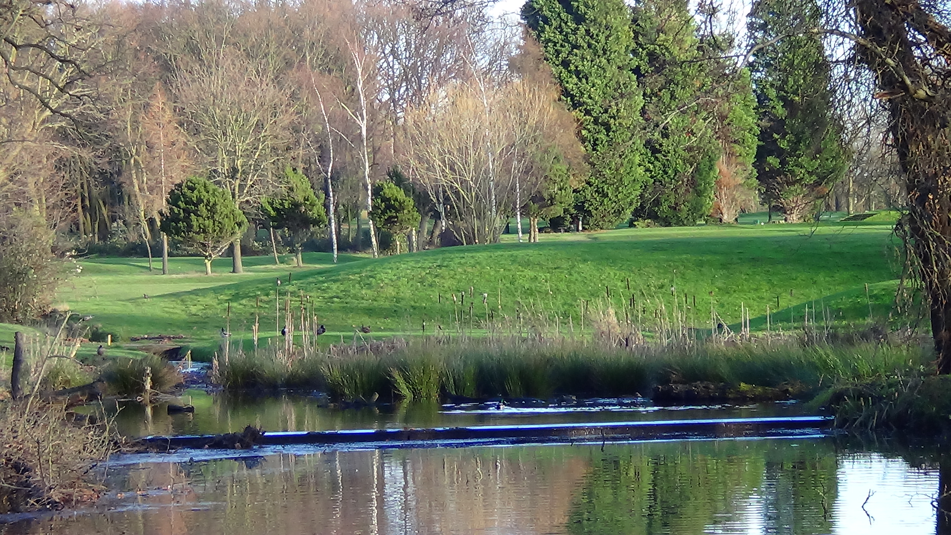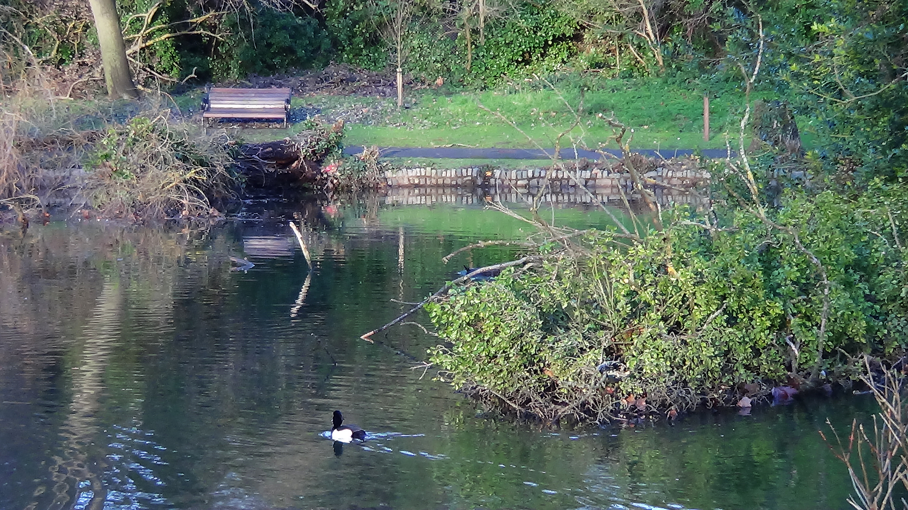 The Tarn looks lovely in the winter afternoon sun and good numbers of Greylag (10) and Canada Geese (5) were present. From the bridge over the lake I caught a brief view of the Kingfisher as it sped away and found a party of 6 Redwing in the trees. The recent storms have caused some damage to the Trees around the Tarn.