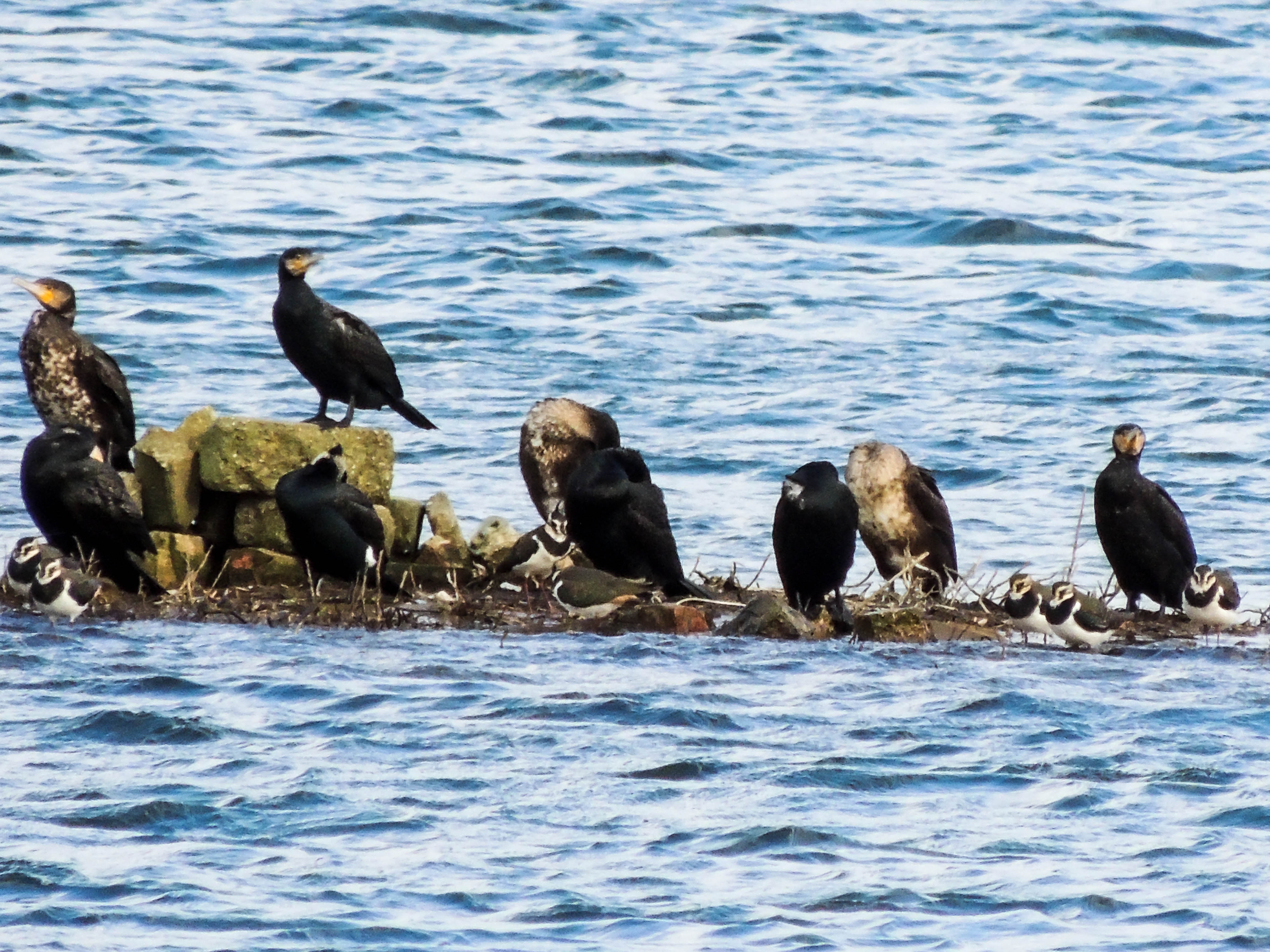 A windy but dry Sunday morning and we set off to spend a few hours at the Sevenoaks Wildlife Reserve. This area just north of Sevenoaks in Kent is made up of old commercial gravel pits, which have been turned into lakes, and the surrounding woodlands. It is good to see when we arrive that despite all the rain and bad weather the reserve is still open, although it is immediately obvious that the water level of the lakes is much higher than normal. Our first stop is Tyler hide on the main lake. The mud bank in front of the hide, which is usually good for wading birds, has virtually disappeared and the Lapwing and Cormorants that are present are having to roost where ever there is small areas of suitable ground which keeps them above the water level.
