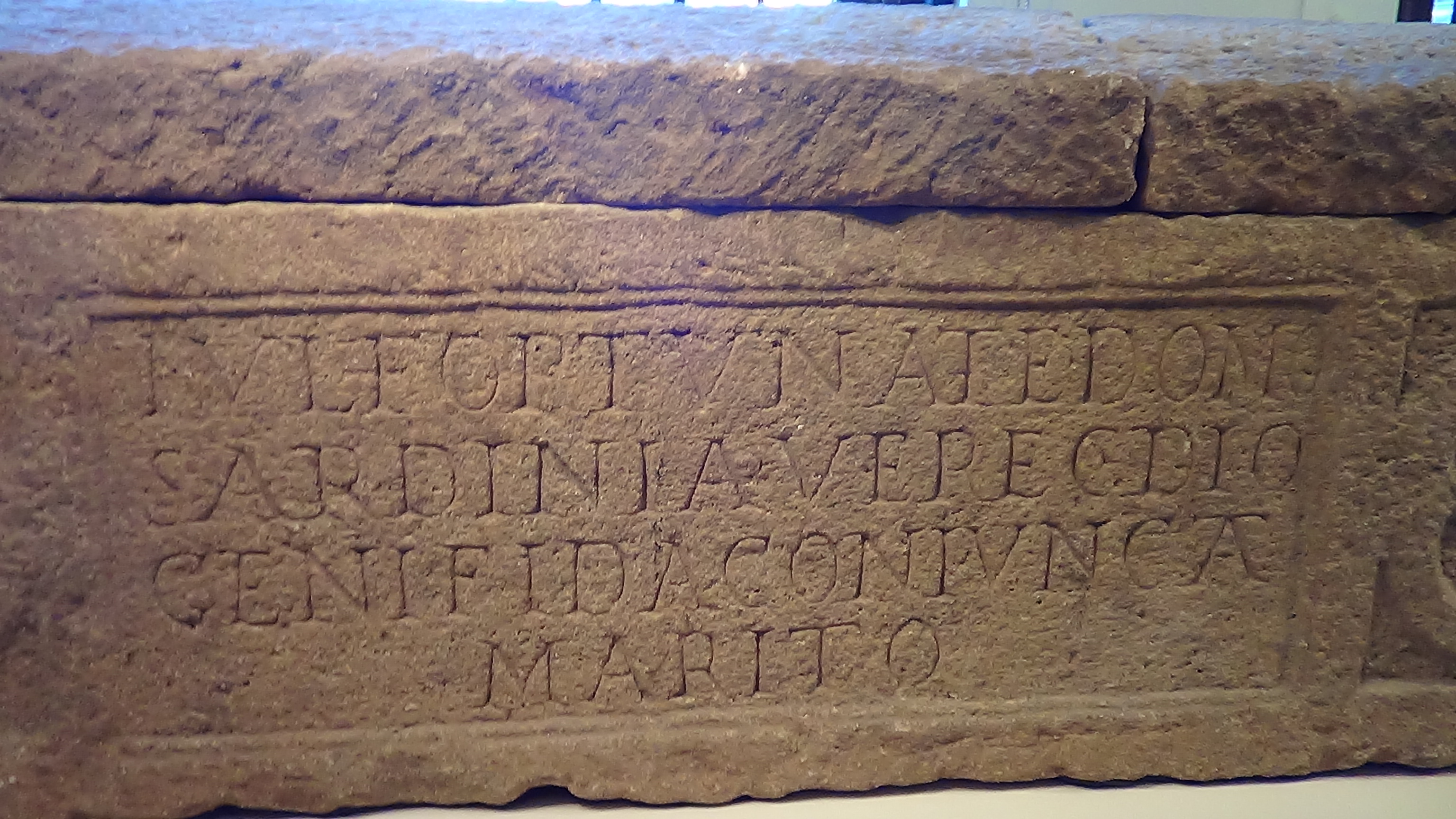 This coffin is something of a mystery. According to the inscription, it was the coffin of Julia Fortuna of Sardinia. However, the skeleton inside was that of a male, suggesting that the tomb may have been reused at some later date than the original burial to house a second body.
