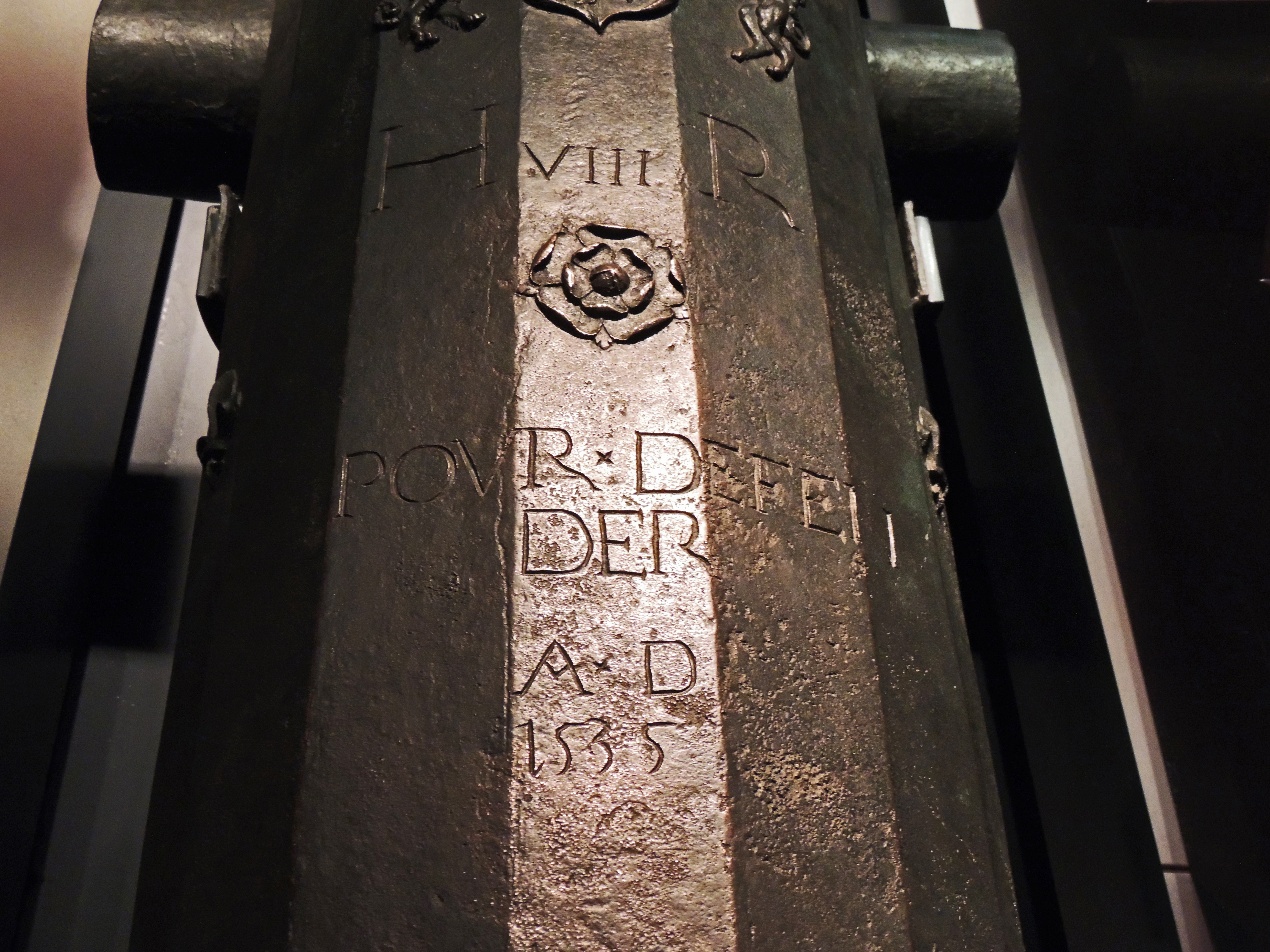 The Mary Rose was originally designed as a platform for soldiers to board another ship. Her original allotment of guns was 78 but of these only 5 were carriage mounted. She was refitted in the mid-1530’s to become much more of a gun platform. After this refit she would carry over 90 guns of which about a third were carriage mounted (Contrast this with HMS Victory where almost all the guns were carriage mounted). The guns were a mixture of types. The bronze cannons were the best and most efficient with the greatest range but these were very expensive, so smaller guns tended to be made in wrought Iron.