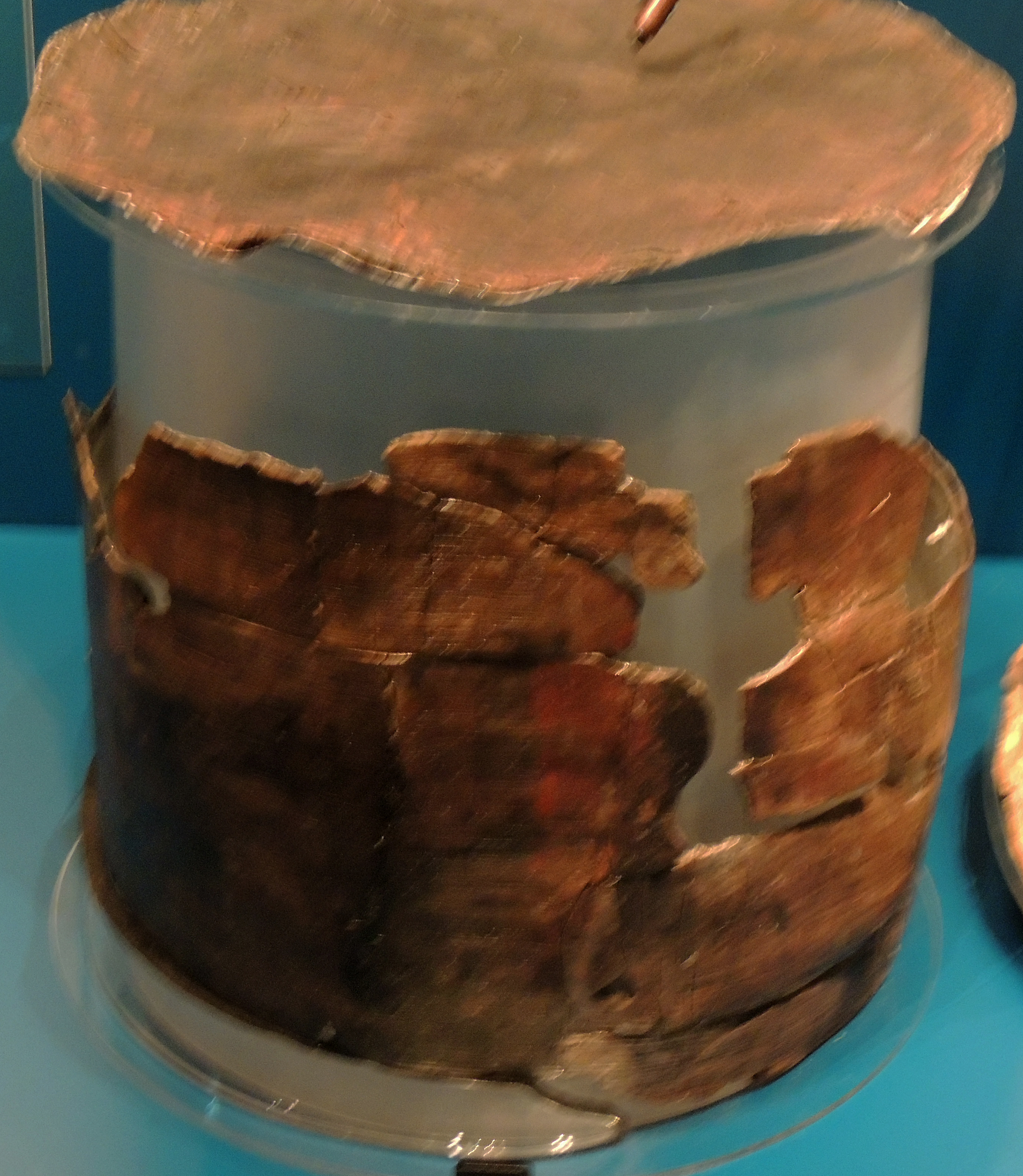 A Tabor or snare drum which would originally been covered in animal skins.