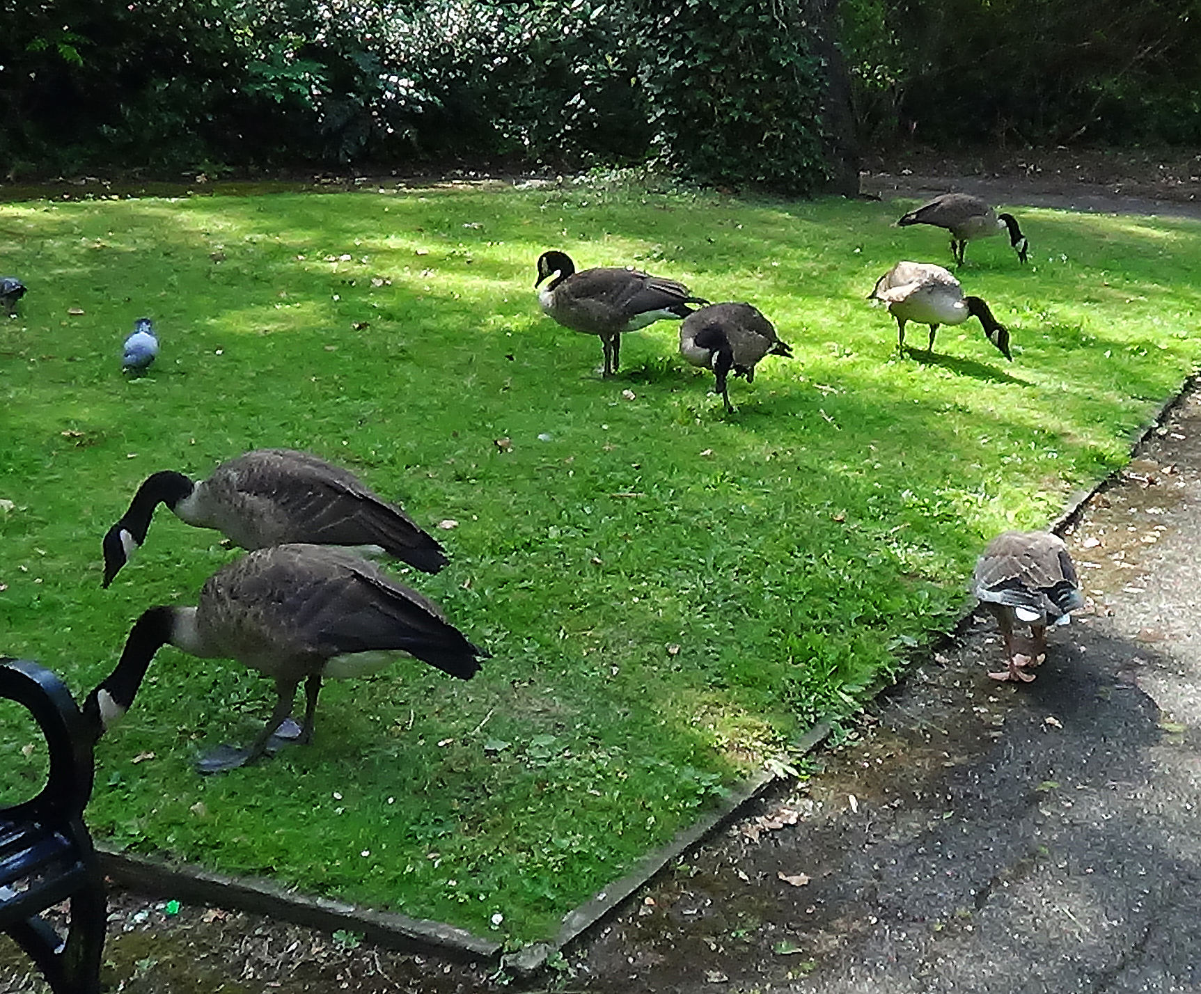 In its self this isnt a real problem, but given the low water level, the high water temperatures and the covering of vegetation, this causes the oxygen level in the water to go down and these anerobic conditions mark the return of our arch nemesis avian botulism. This bacteria dwells in the mud at the bottom of the lake and awaits the ideal conditions to multiply. As it multiplies it poisons the water so that the birds become sick and eventually die. It has struck again this year and so far this month, the volunteers were telling me, 16 birds have had to be removed from the Lake either dead or to be put down. Whilst I was there a RSPCA inspector came along with a very sick looking Canada Goose in his arms. Another for the casualty list. There are no easy solutions – new water pumps to aerate the water, draining the lake and mud clearance – all are very expensive. The local council who own the site cannot afford it and the Friends organisation who help improve the site havent got the money. So it seems we just go on. There are still some waterfowl left, but part of me wishes that they would leave for their own good.