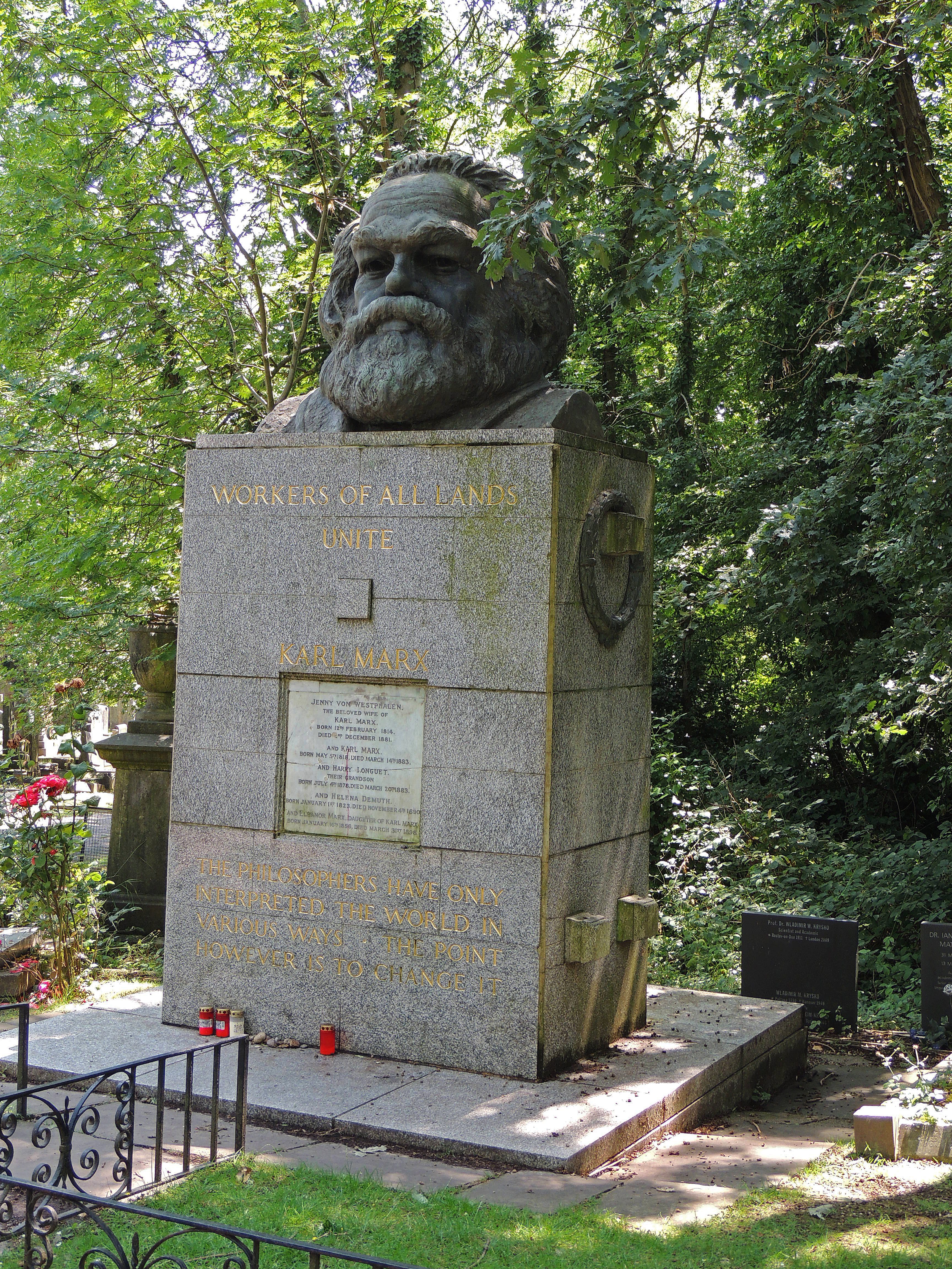Karl Marx (1818-1883), the cemetery’s most famous resident. The German political philosopher and revolutionary socialist lived his last 30 years in London. His original memorial was quite small, but was replaced by the current one in 1954 by the Communist party of Great Britain. It is interesting to see the number of other socialist activists and thinkers who have been buried in the area around their ‘philosophical father’.