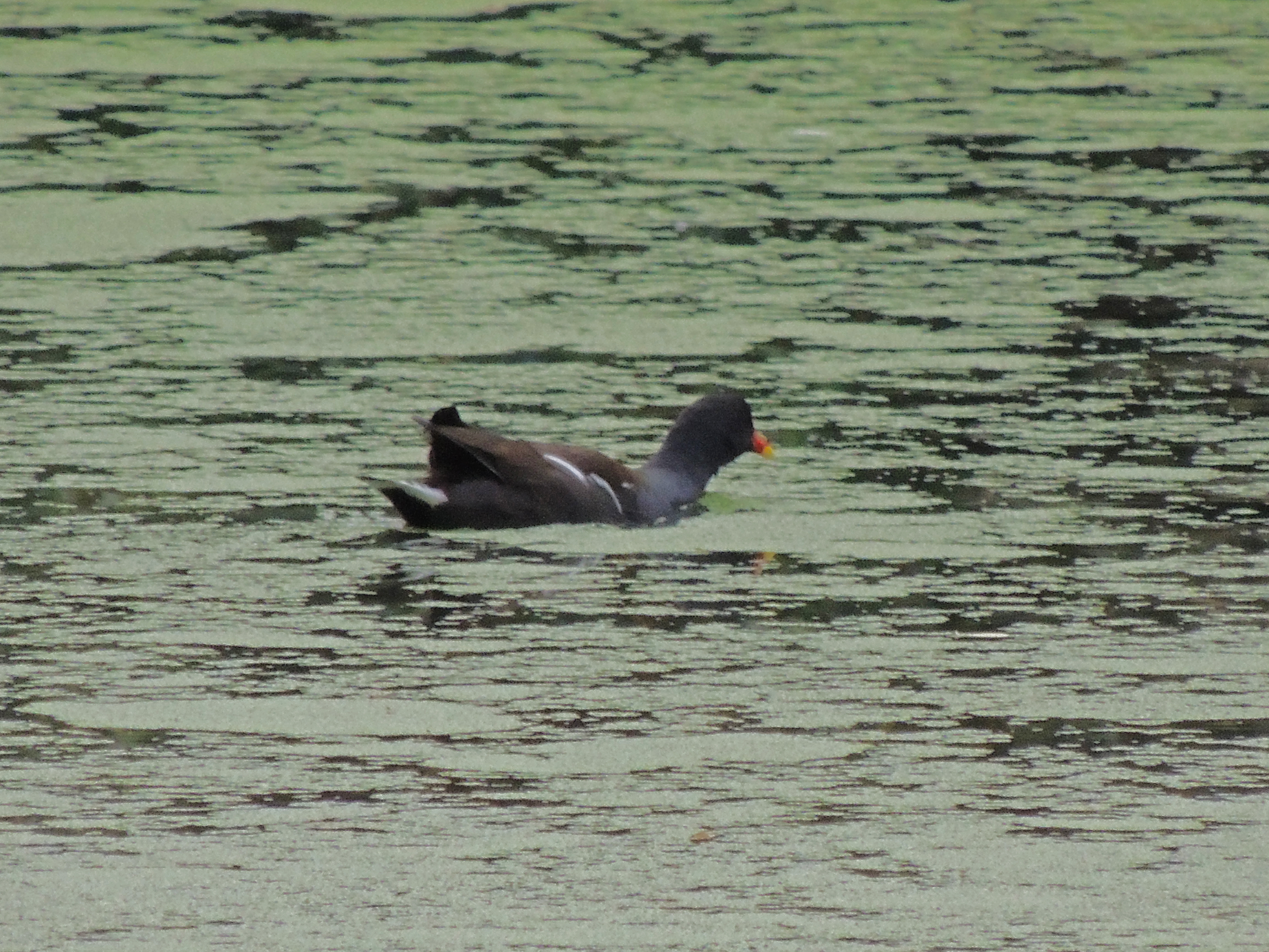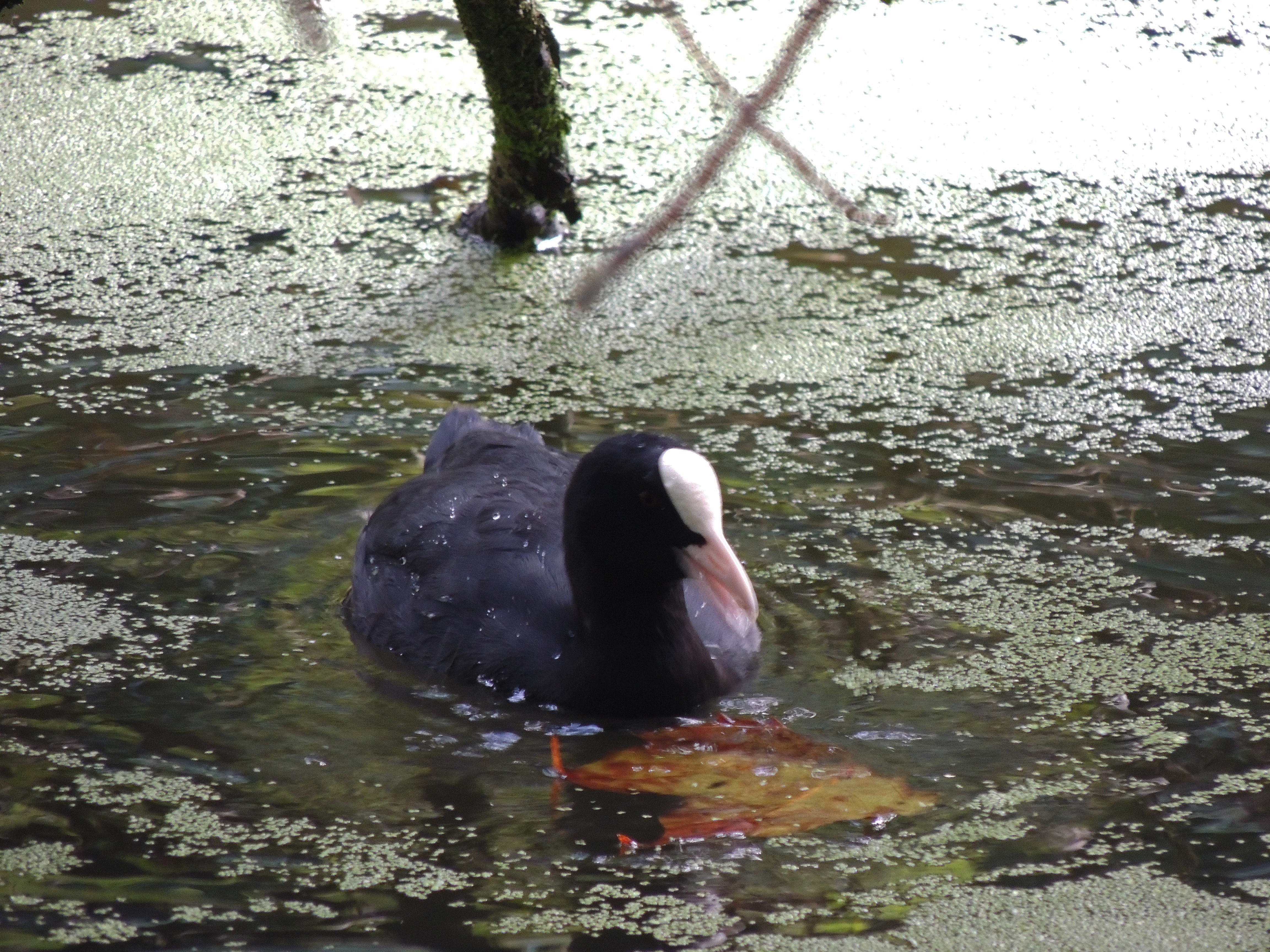 There are only a few water birds present. In fact one coot and one Moorhen.