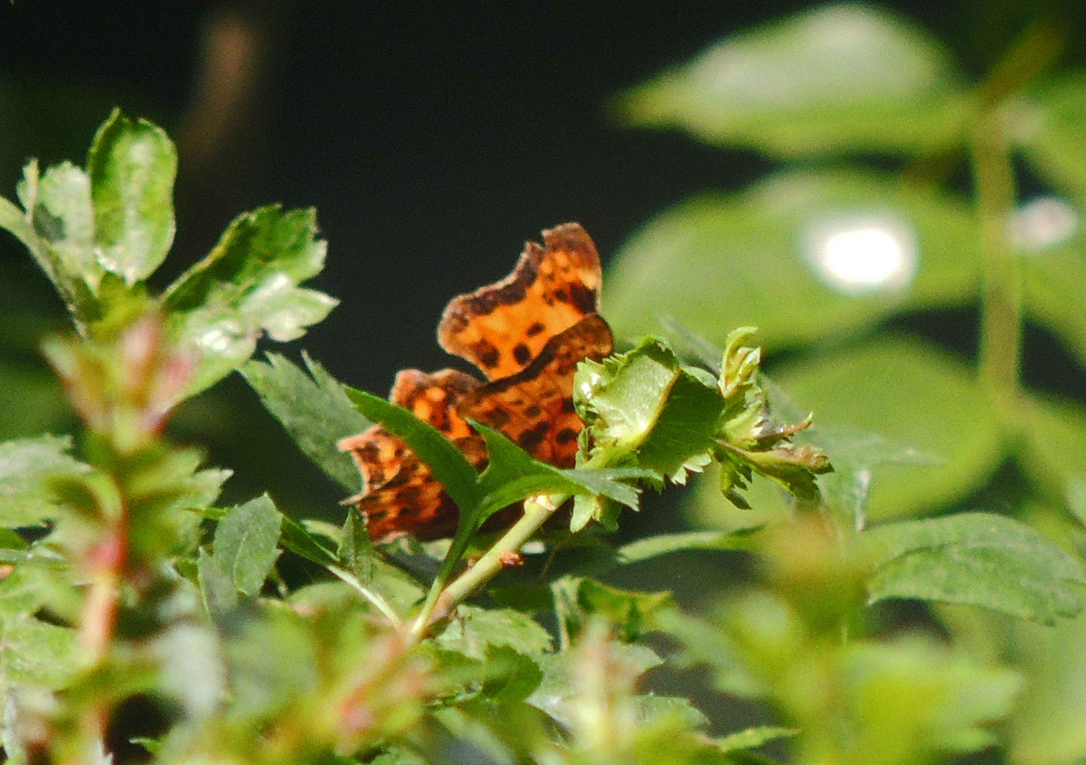 The Comma is one of our most iconic and easily recognised species. Its bright orange upper wing and scalloped edges making it easily identifiable even on the wing. Yet it is a master of diguise with its brown -grey underwing enabling it to remain unseen whilst hibernating in dead leaves and its larve which are said to look ‘ just like bird droppings’. It is widespread in England and Wales but rare in Scotland.