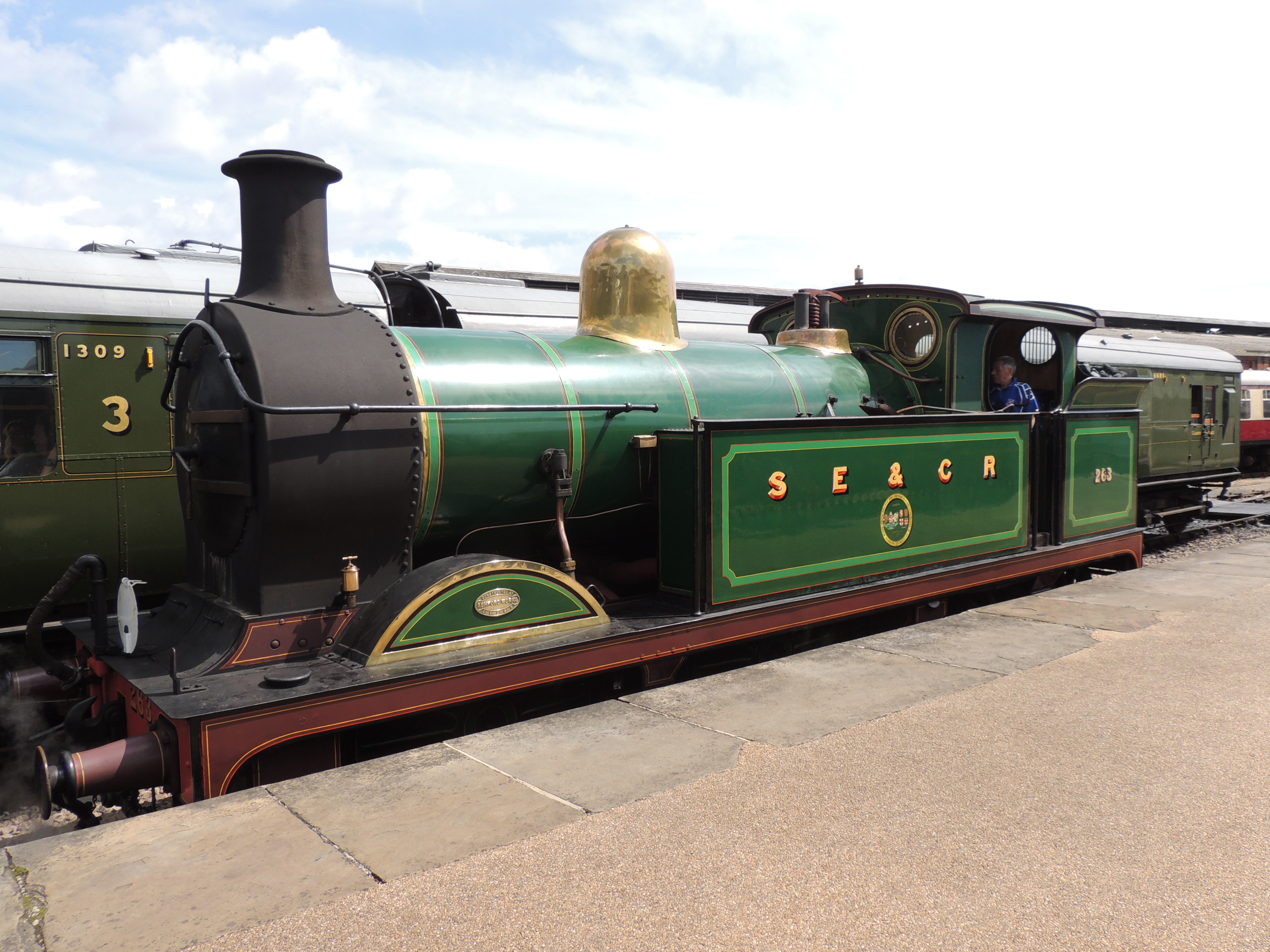 H class 263 was built at Ashford, Kent in 1905 and was designed for surburban passenger services on the LSECR. It later saw service on Sussex rural branch lines and could often be found on the line between East Grinstead and Three Bridges. It was withdrawn from service in 1964 and went into preservation with stays at Robertsbridge and Ashford before arriving at the Bluebell Railway in 1975.