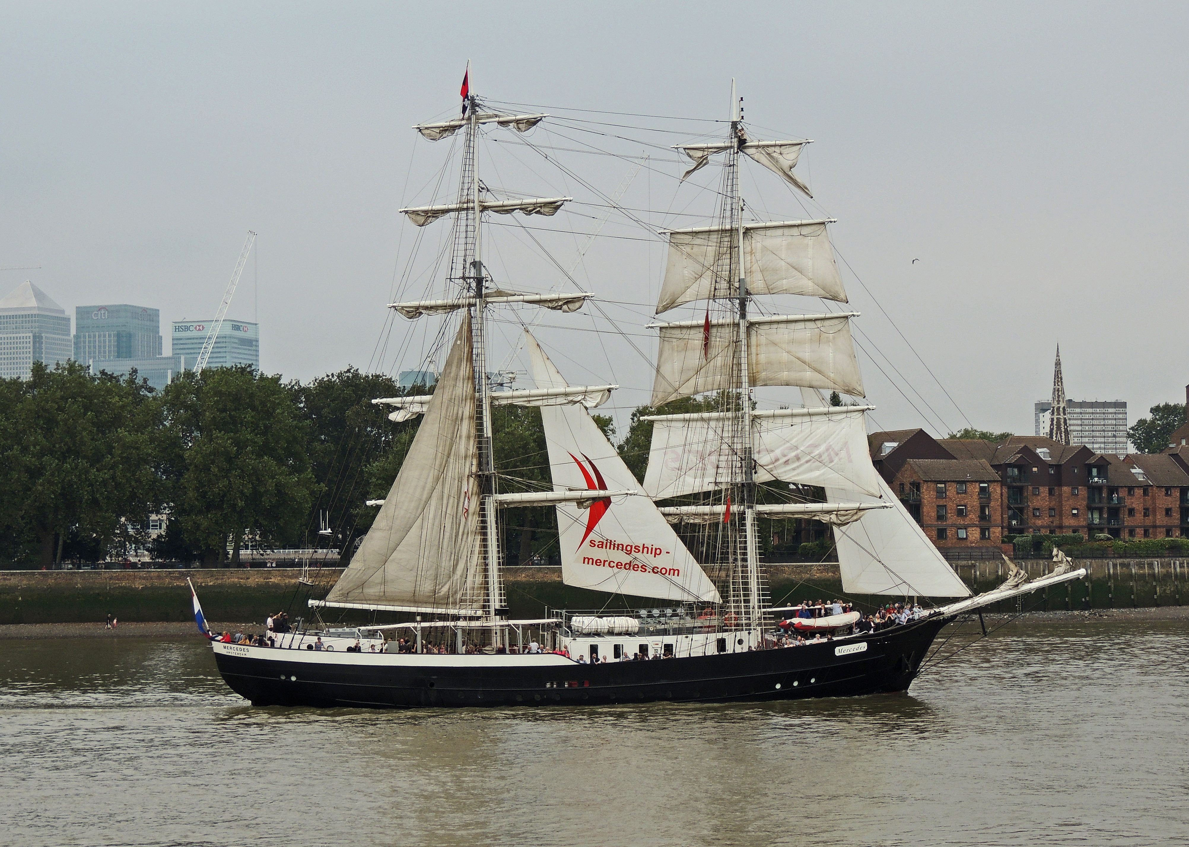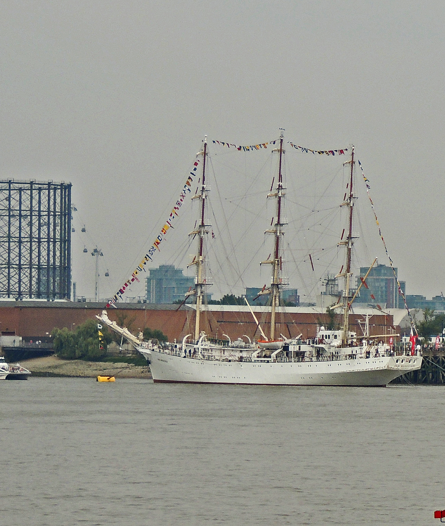 Dar Mlodziezy moored at Greenwich Penninsular