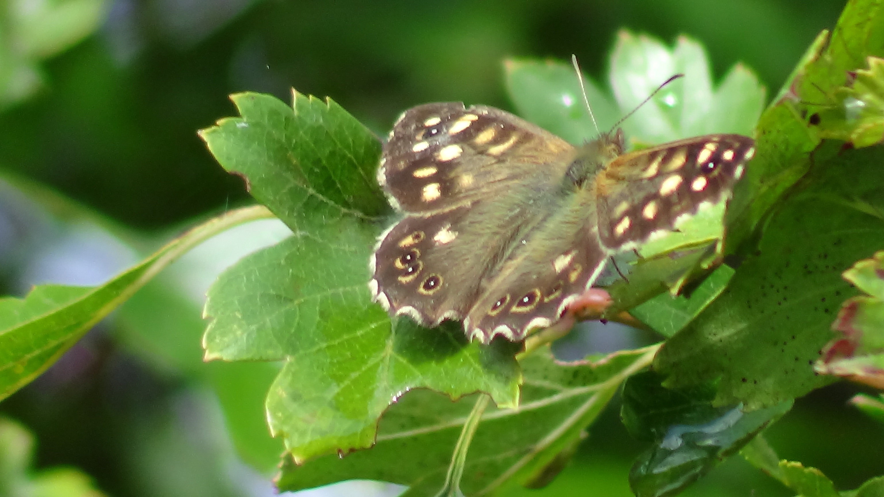A late Speckled Wood butterfly was a first record this year for the garden and a Migrant Hawker has been zooming round the trees