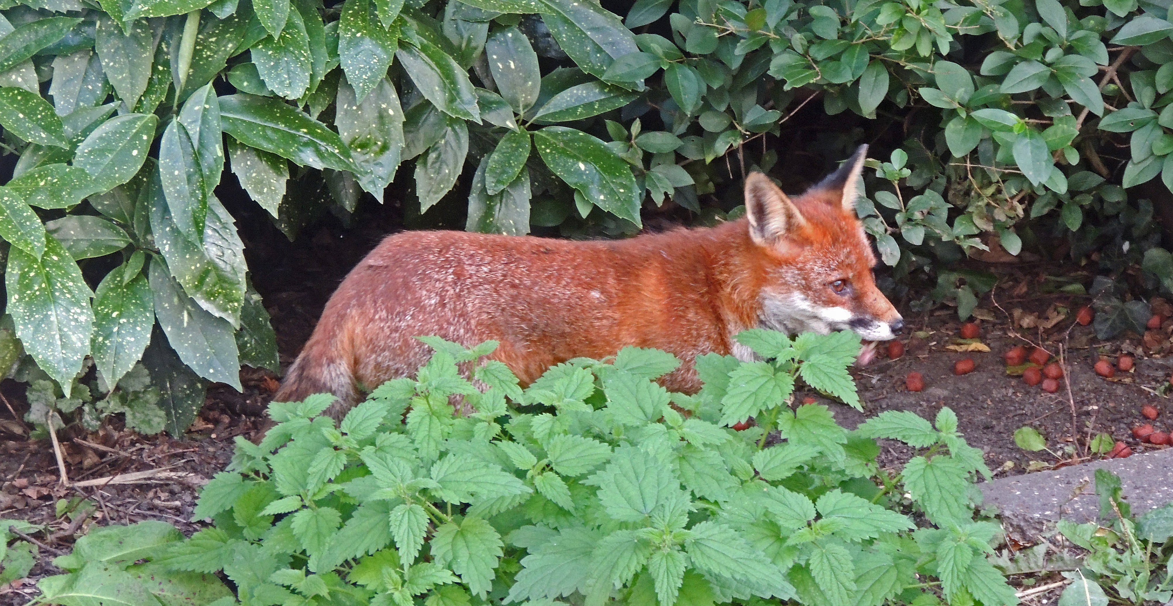 A Red Fox spent some time in the afternoon nosing around the borders looking for food