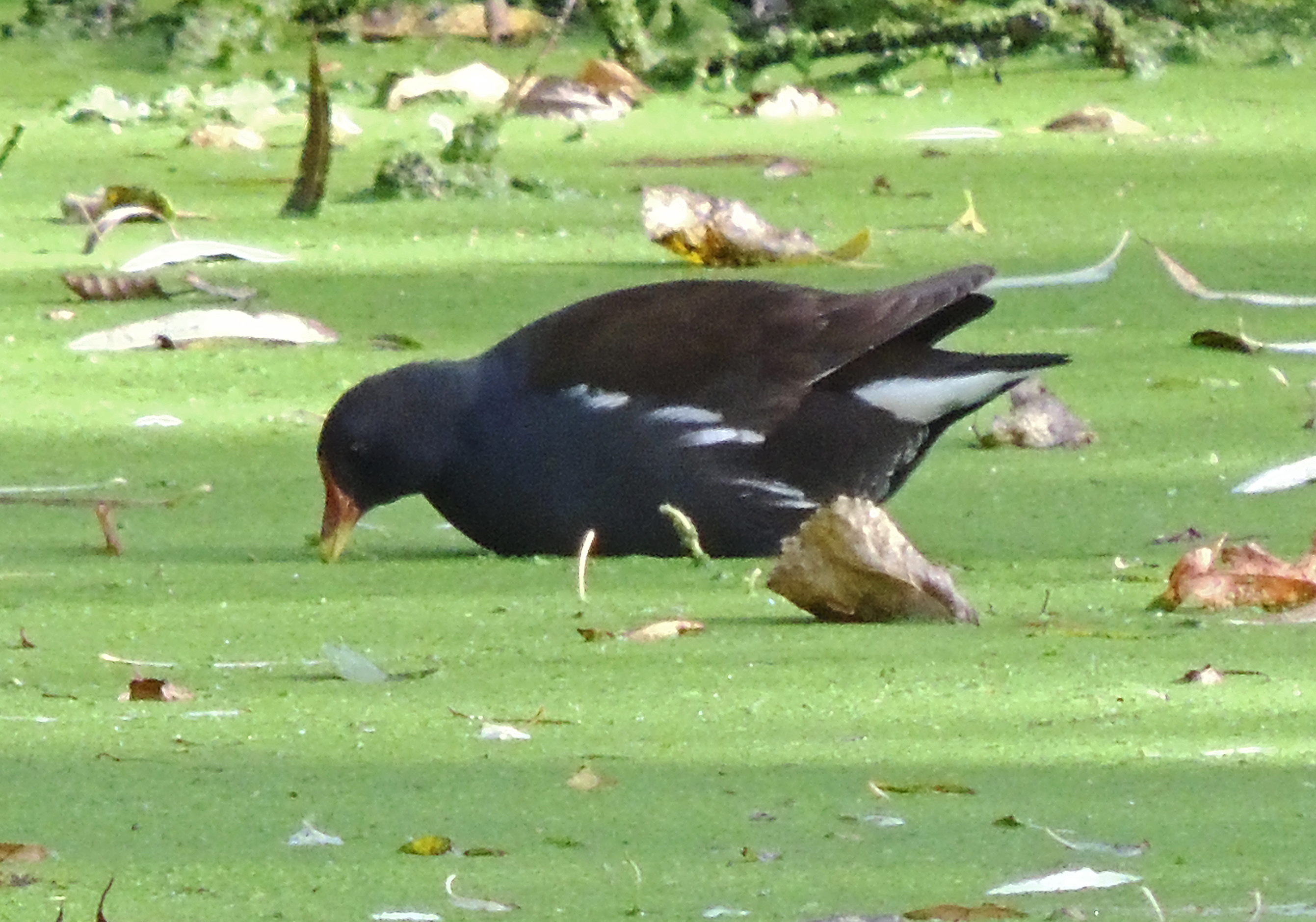 Given the high mortality amongst Geese and Ducks this year due to the avian botulism which has flourished as a result of the algal cover, I was most suprised to record a record number of Moorhen on the lake. Looking back, my counts for the last couple of trips have been high too which suggests that despite the conditions and problems they have had a very good breeding year. This is so much in marked contrast to the other waterbirds.