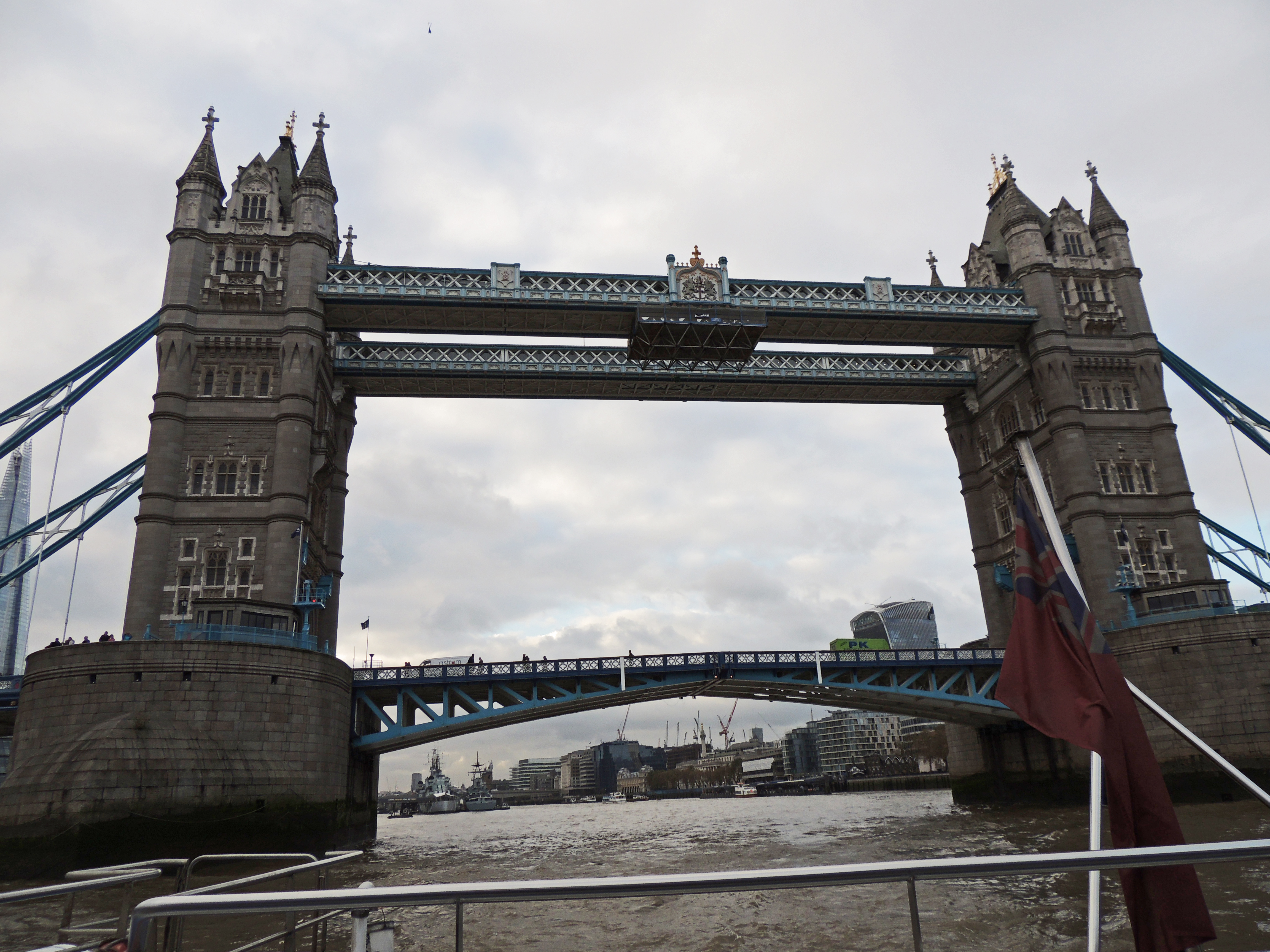 HMS Edinburgh passes under open Tower Bridge in 2013
