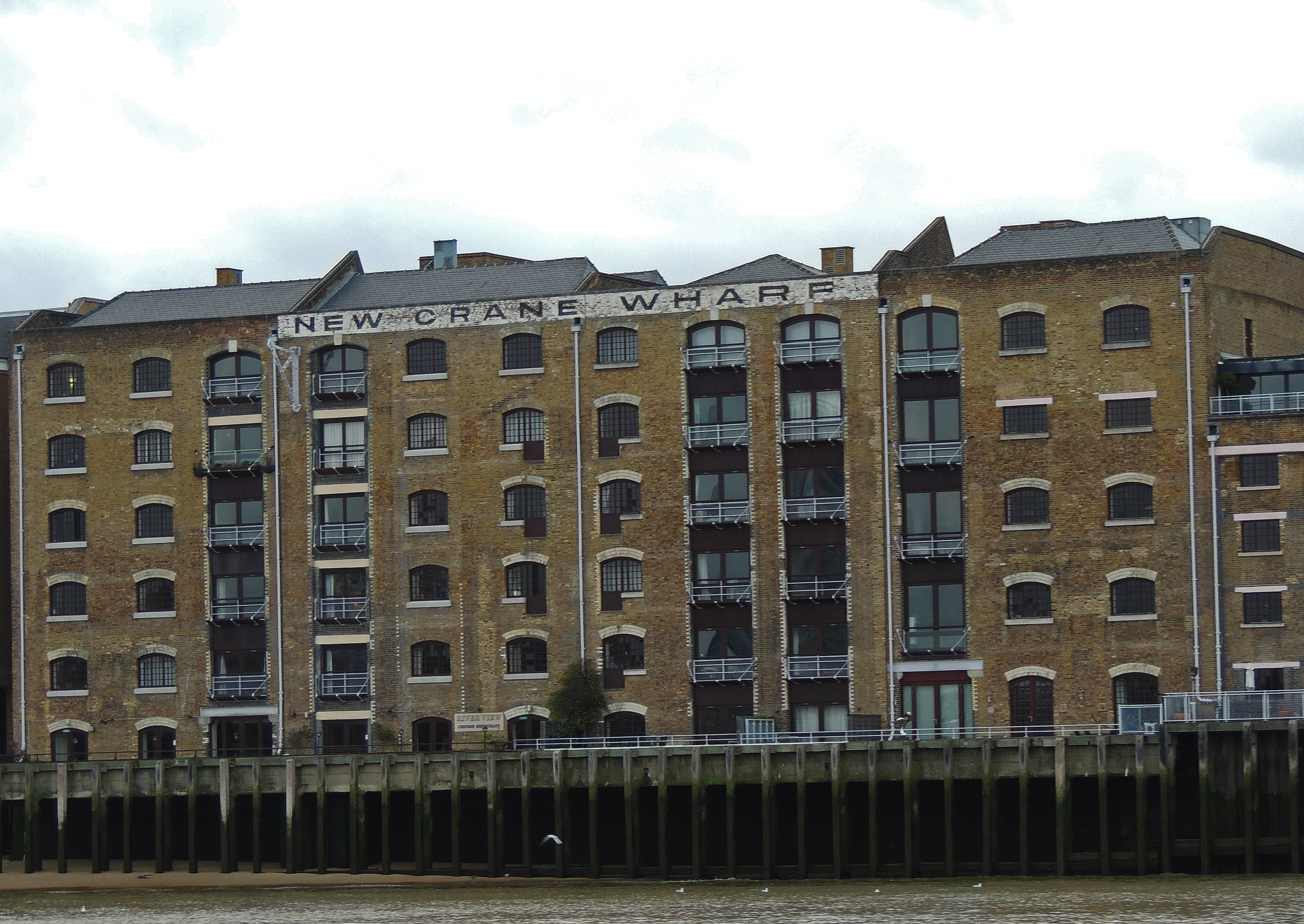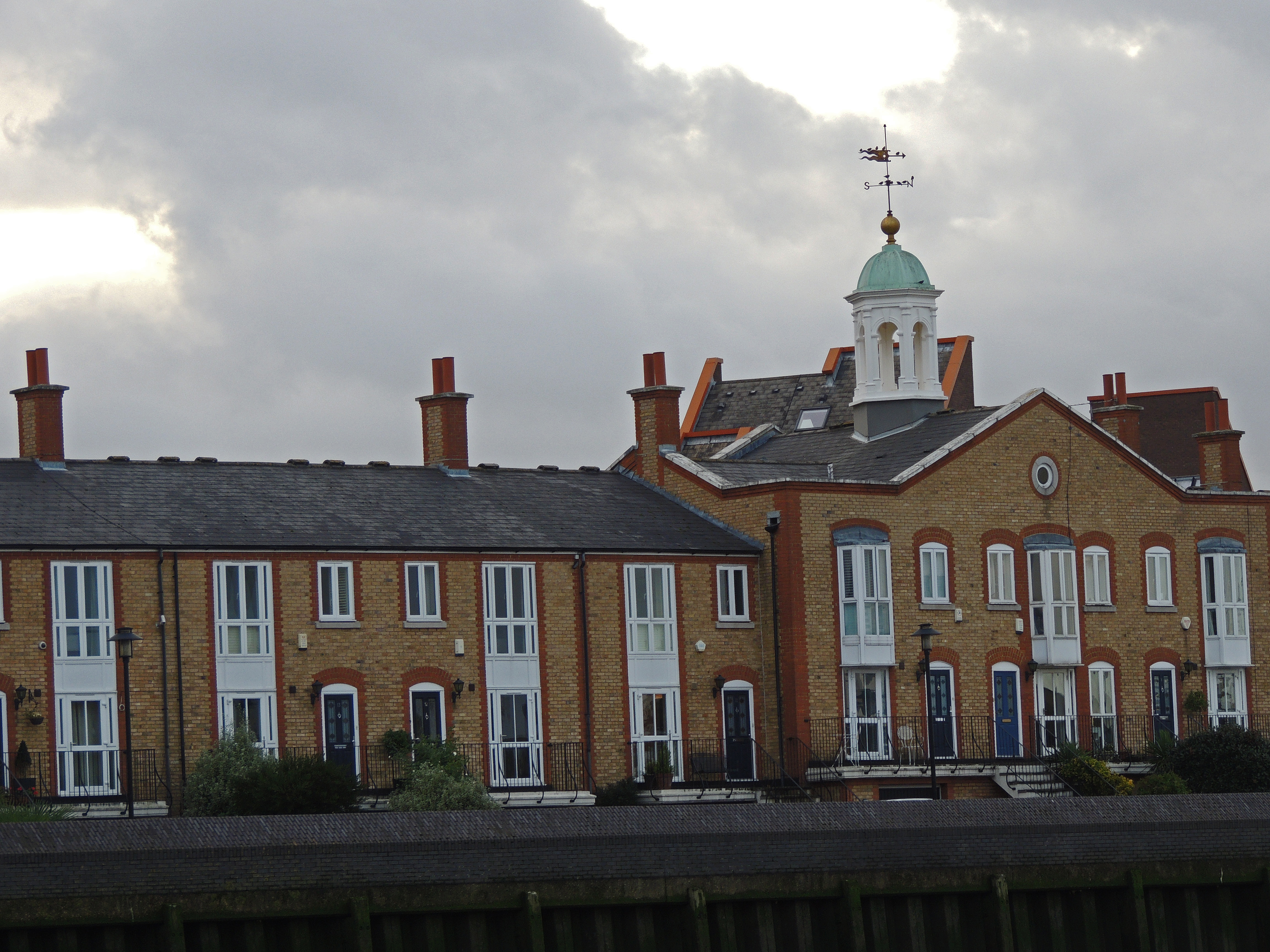 As we approach Canary Wharf and the centre of London Docklands there is more housing which has used the original riverside buildings.