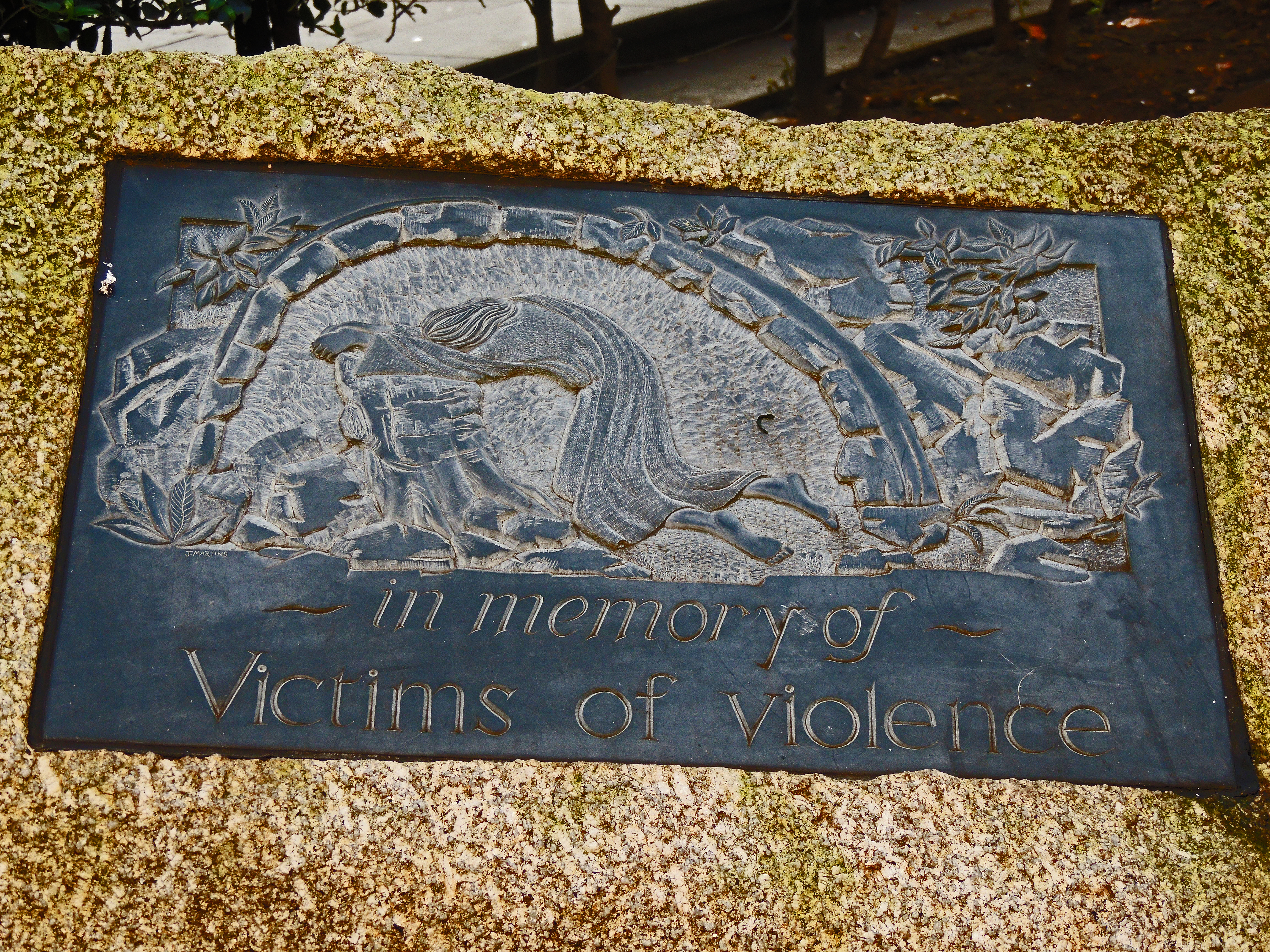 The other memorial in the Garden was only unveiled in 2013. It is dedicated to those who have died by violence and was commisioned by Victims voice, an organisation which campaigns for the rights of relatives of people who have been murdered.