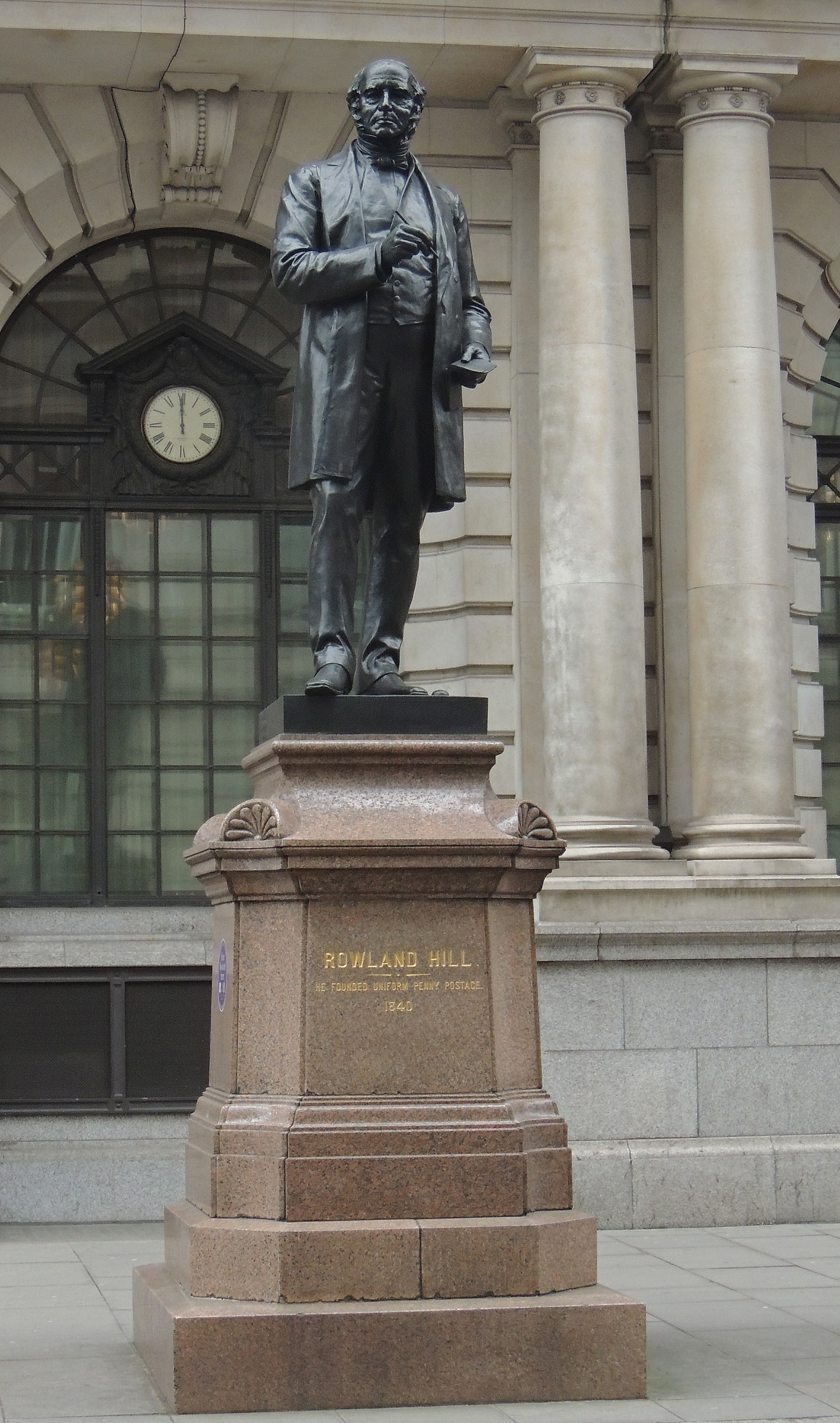 In 1846, Lord Russell the new PM, offered him the post of Postmaster General and later made him Secretary to the Post Office and he reamined in post until 1864. He was knighted for his work in 1860 and he died in 1879 and was buryed in Westminster Abbey. The statue in bronze by Edward Onslow Ford was errected in 1881 and stands outside the King Edward Street building (formerly the major sorting centre in the City of London and now owned by Merrill Lynch).