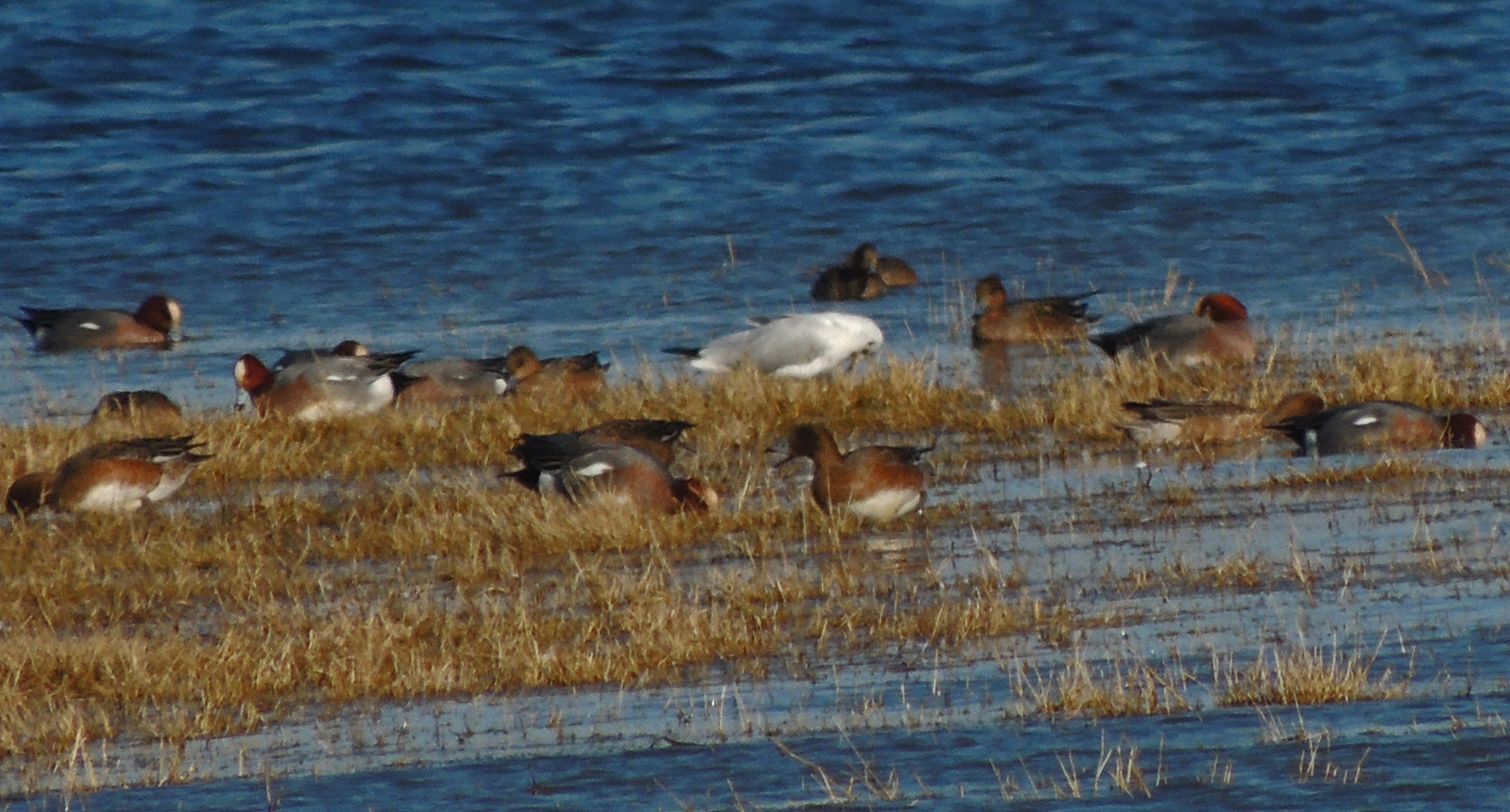 There is also a good selection of duck feeding on the edges of the reservoir. Eurasian Wigeon are the commonest species present, but out on the reservoir itself there are a few Goldeneye.