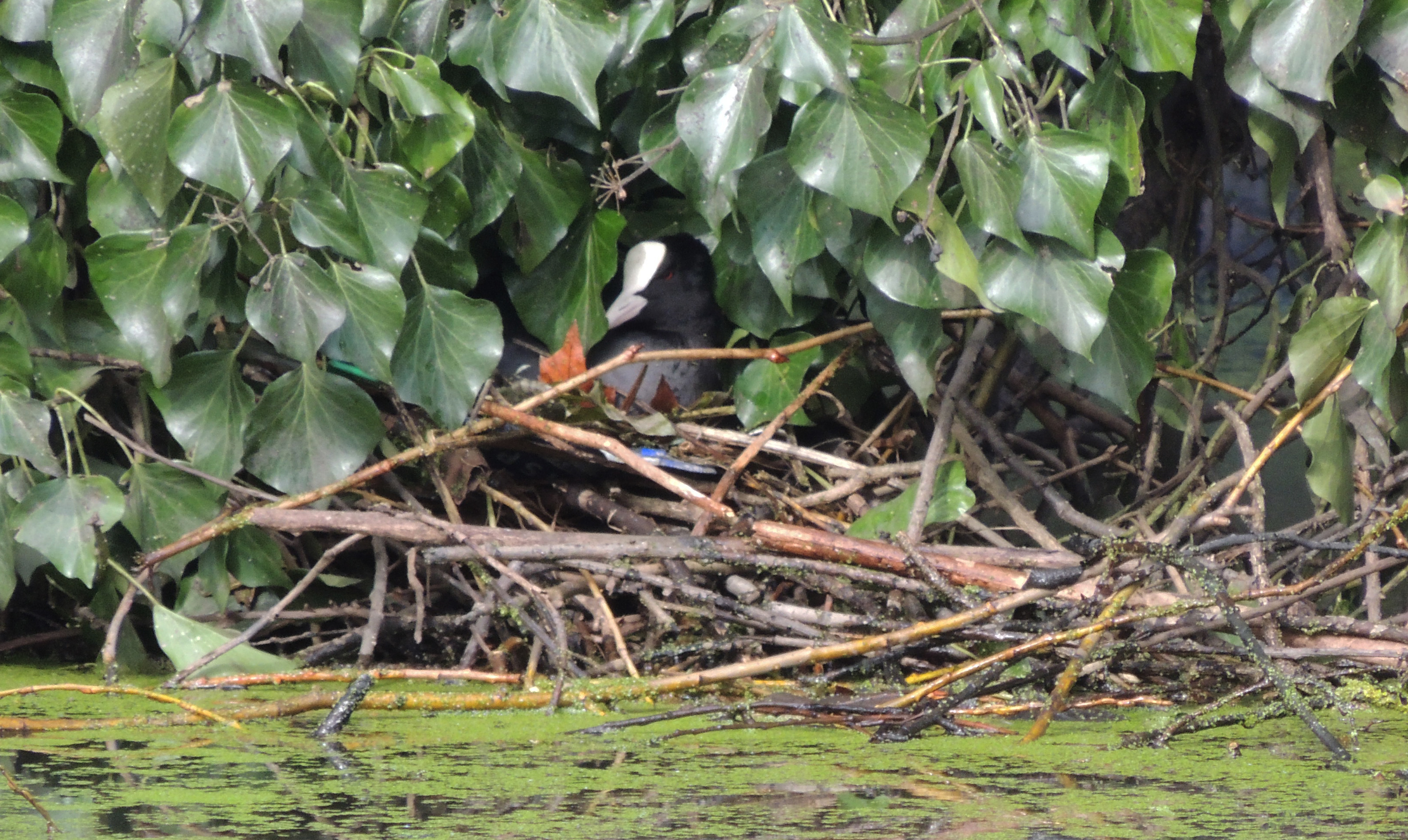 The coots and Moorhens are gathering nesting material and I spend a pleasant 10 minutes watching a male gathering twigs, which he then passes to his mate who arranges them in the nest.