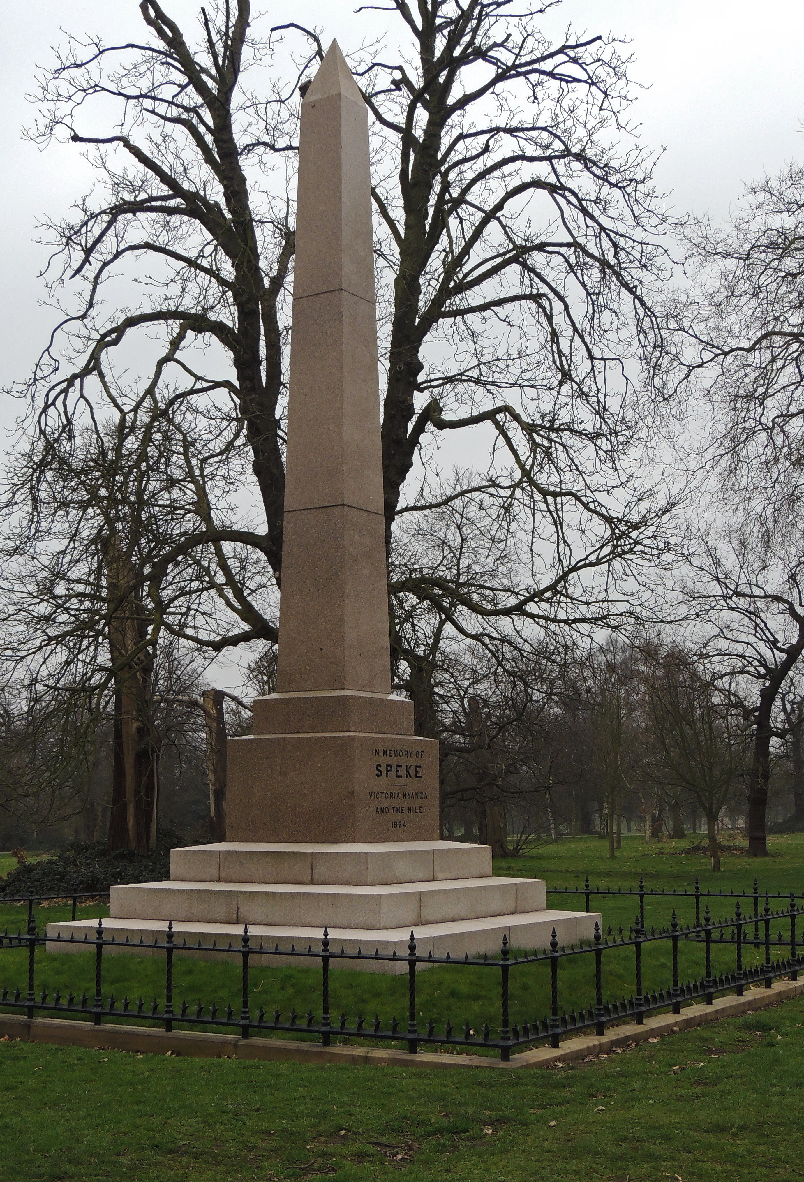 Subsequent expeditions proved that Speke had been correct. In 1866 a memorial was commissioned by the Royal Geographic society, which had financed his expeditions. It is simple in nature and is by the sculptor Phillip Hardwick. It stands at the northern end of Kensington Gardens