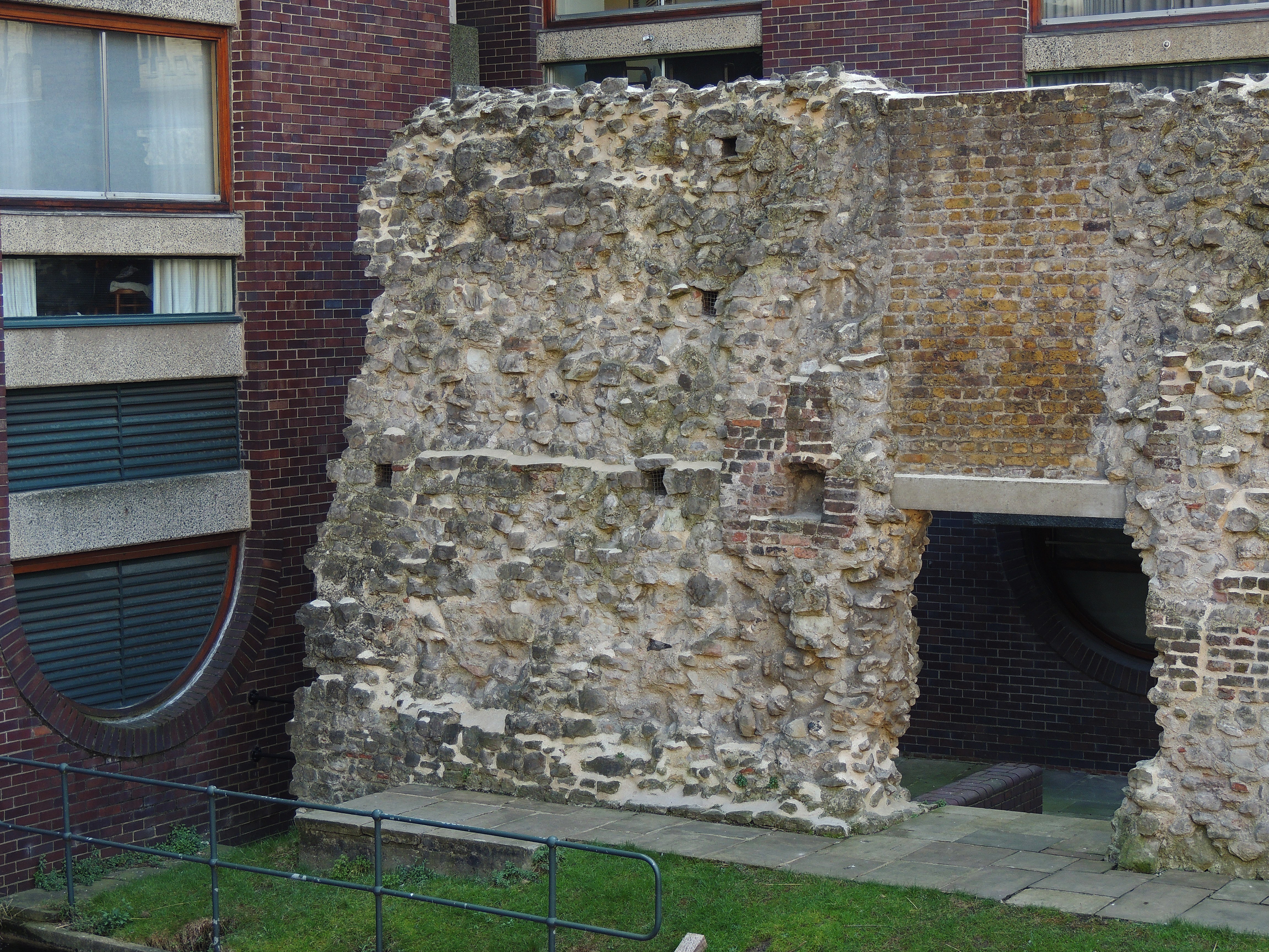The development, built during the 1960s and 70s, lies across the line of the old city wall and some parts of the old wall are preserved amongst the blocks of flats and offices. I was recently doing some photography there of the remains when something caught my attention.