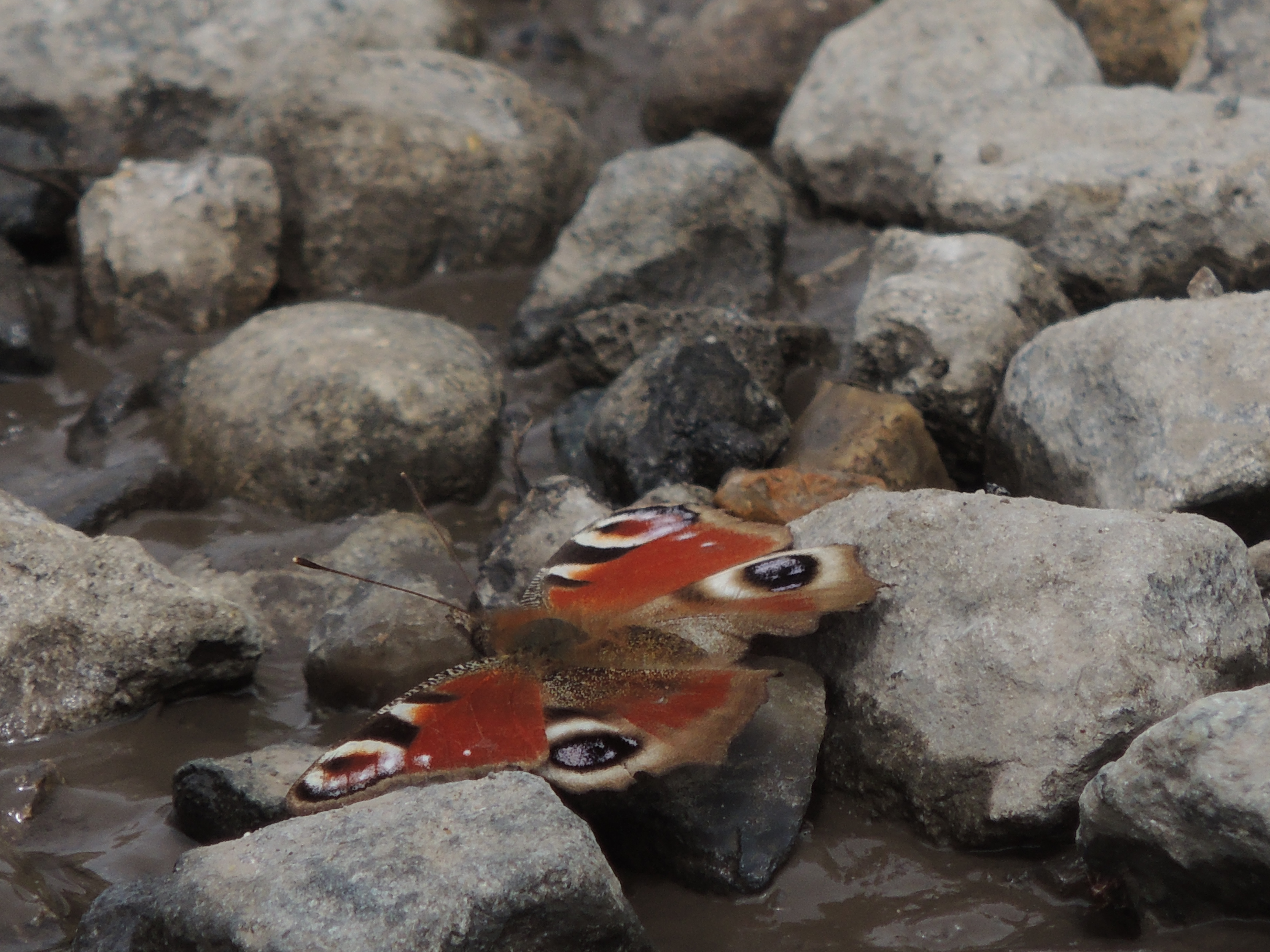Our attention was drawn to a bush by flying ‘butterflies’. We thought at first that they were Small Tortoisehsells, but on closer examination we found that they were moths. They were fast flying and reluctant to settle and of course impossible to photograph. I even tried using the video camera but with no success. Neither of us is very knowledgeable about Moths but enquiries since have suggested that they were male Emperor Moths and that somewhere in the bush was one of more females and this accounted for their frantic activity.