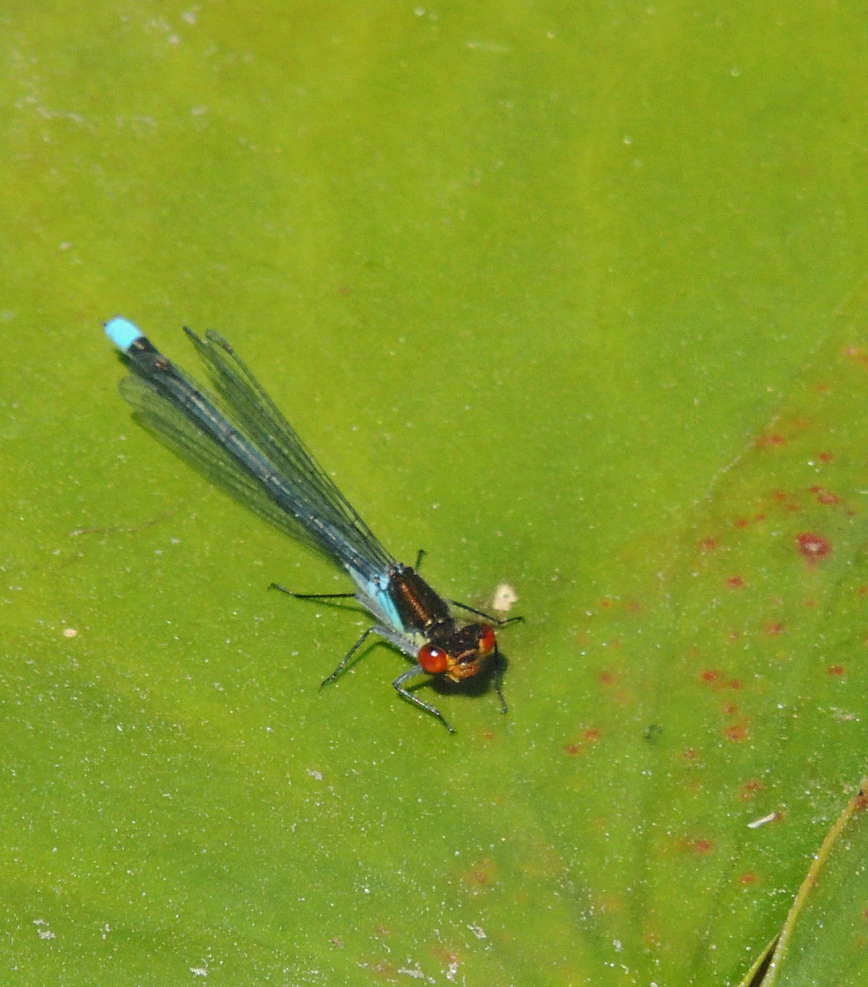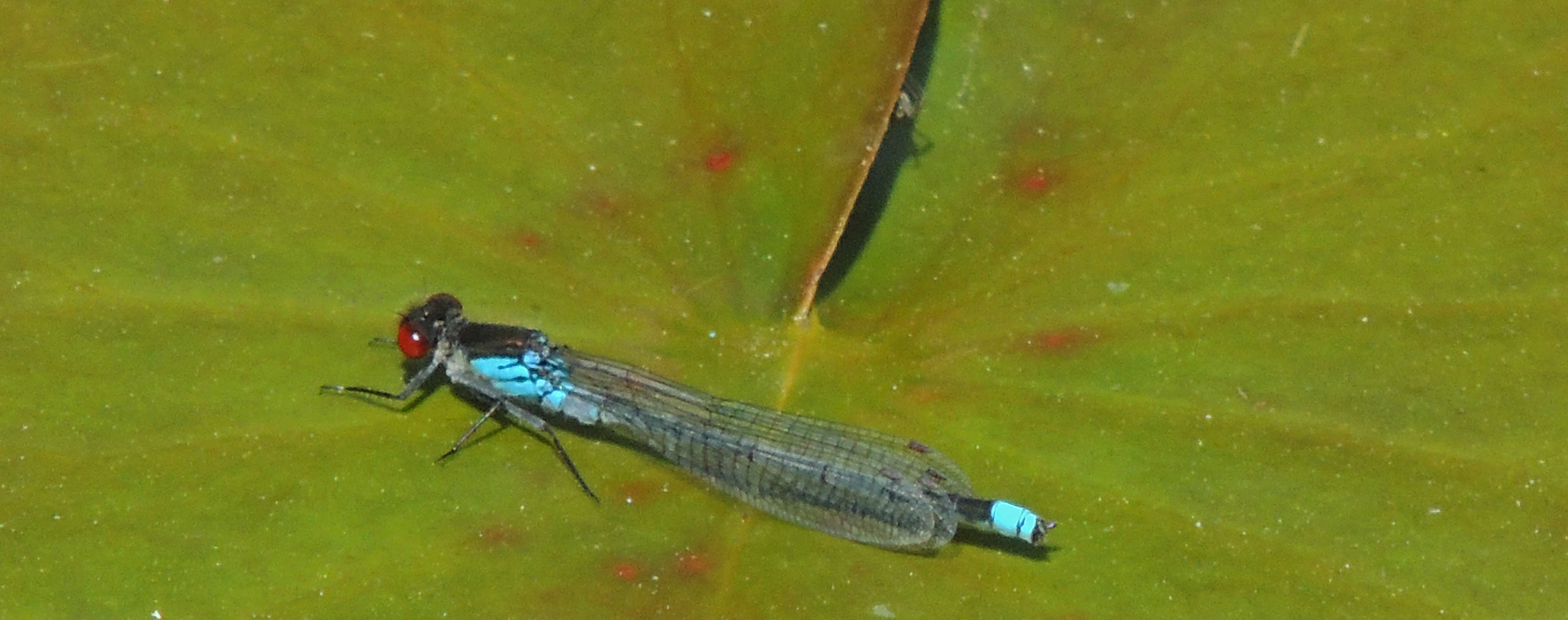 As I approach the moat I can hear Reed Warbler singing in the reed-bed. The first damselflies seen are Red-eyed, easily identified by their prominent red eyes which can often be seen with the naked eye.