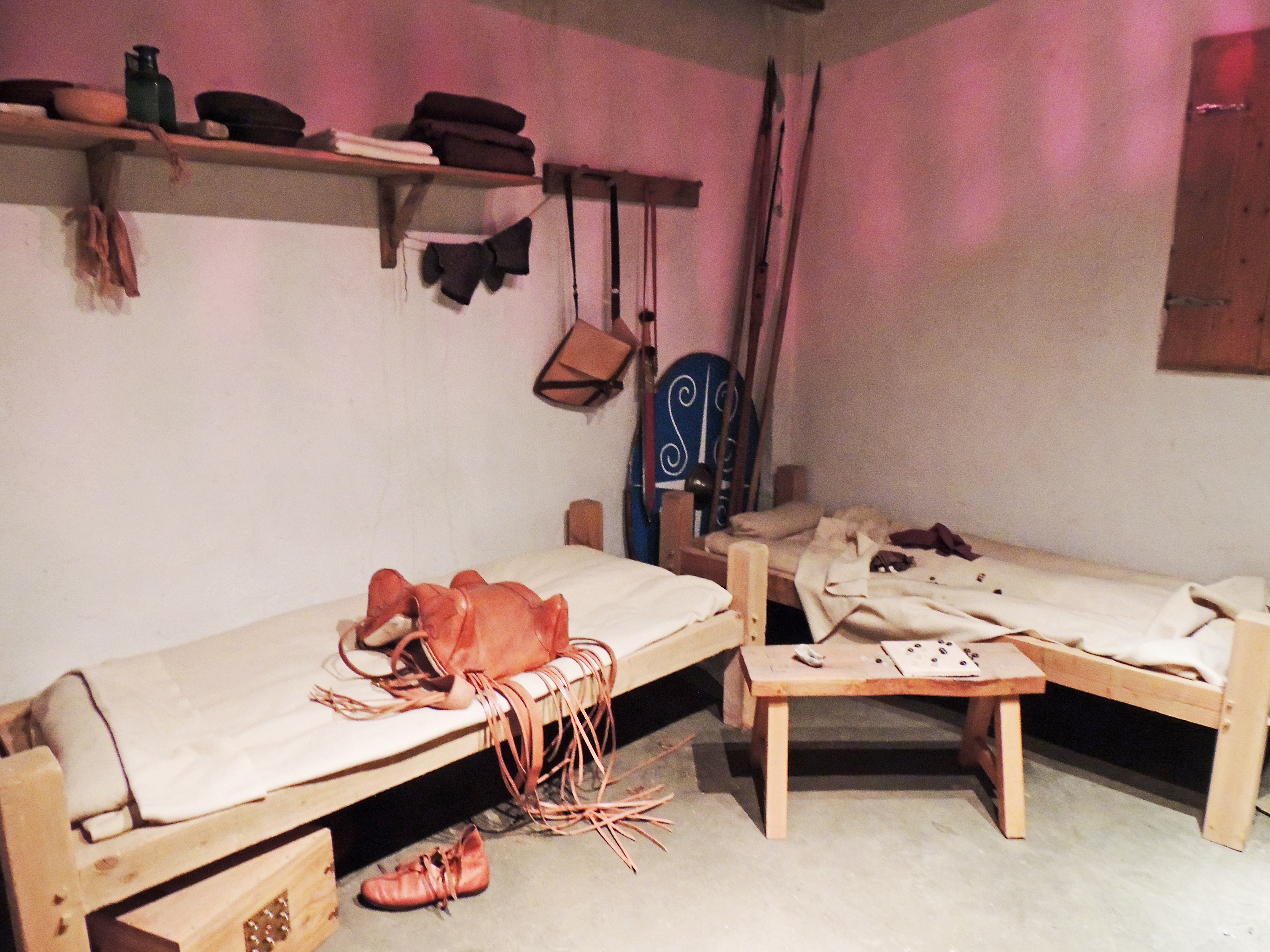 In the museum at Segedunum, there are re-constructions of a barrack room and the shrine within the Principia where the military standards and trophies were kept.