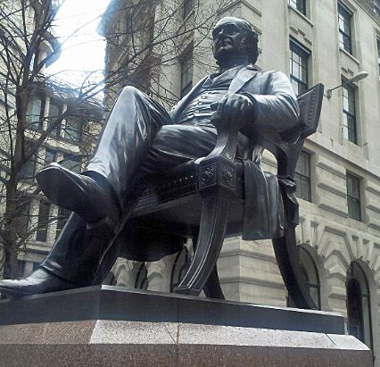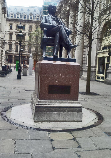 This statue,, which can be found at the rear of the Royal Exchange in London, is by W. W Storey, a fellow American, and was unveiled in 1871, just two years after his death.