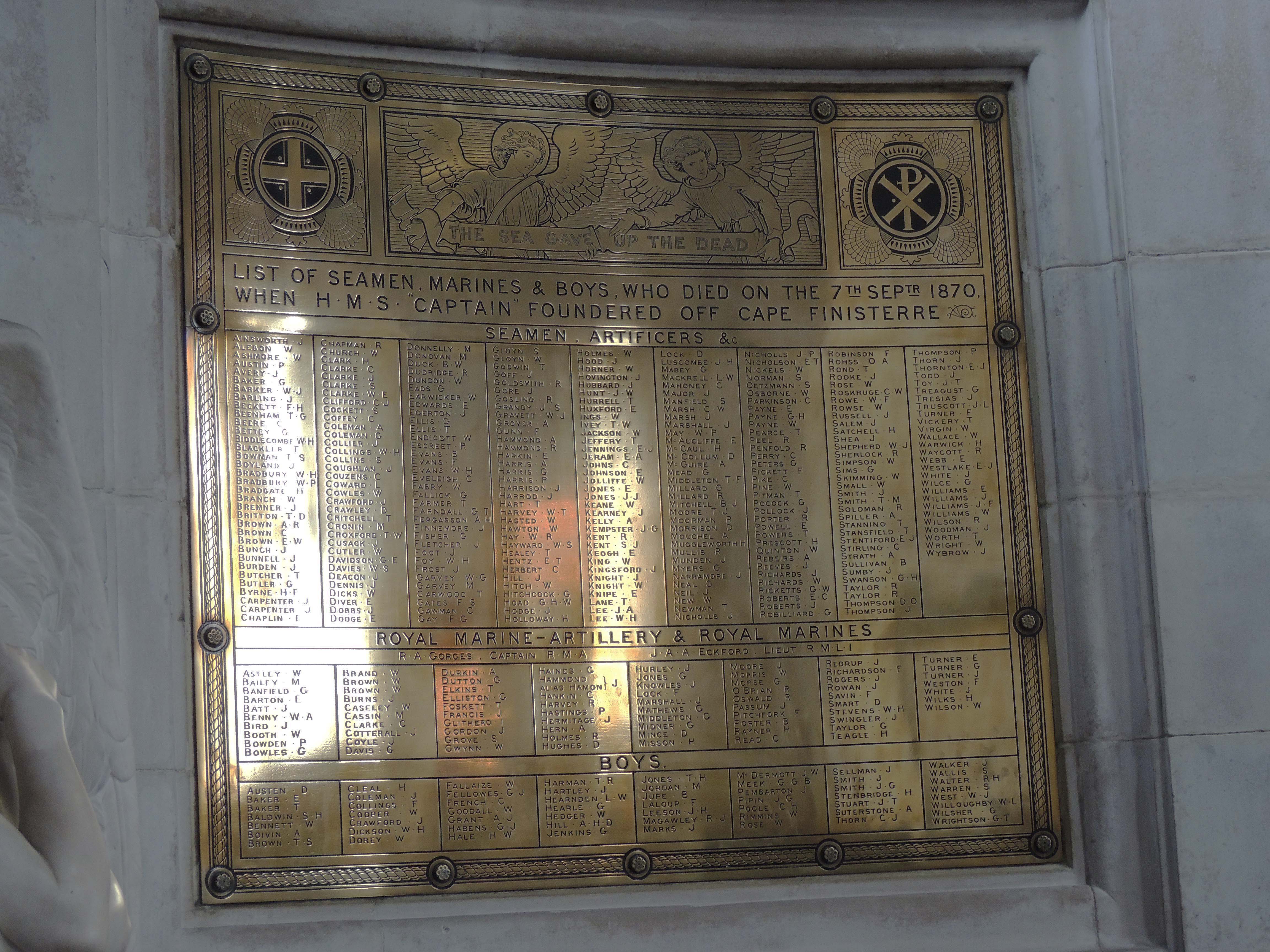 Names of those lost on the HMS Captain 1870 St Paul’s Cathedral