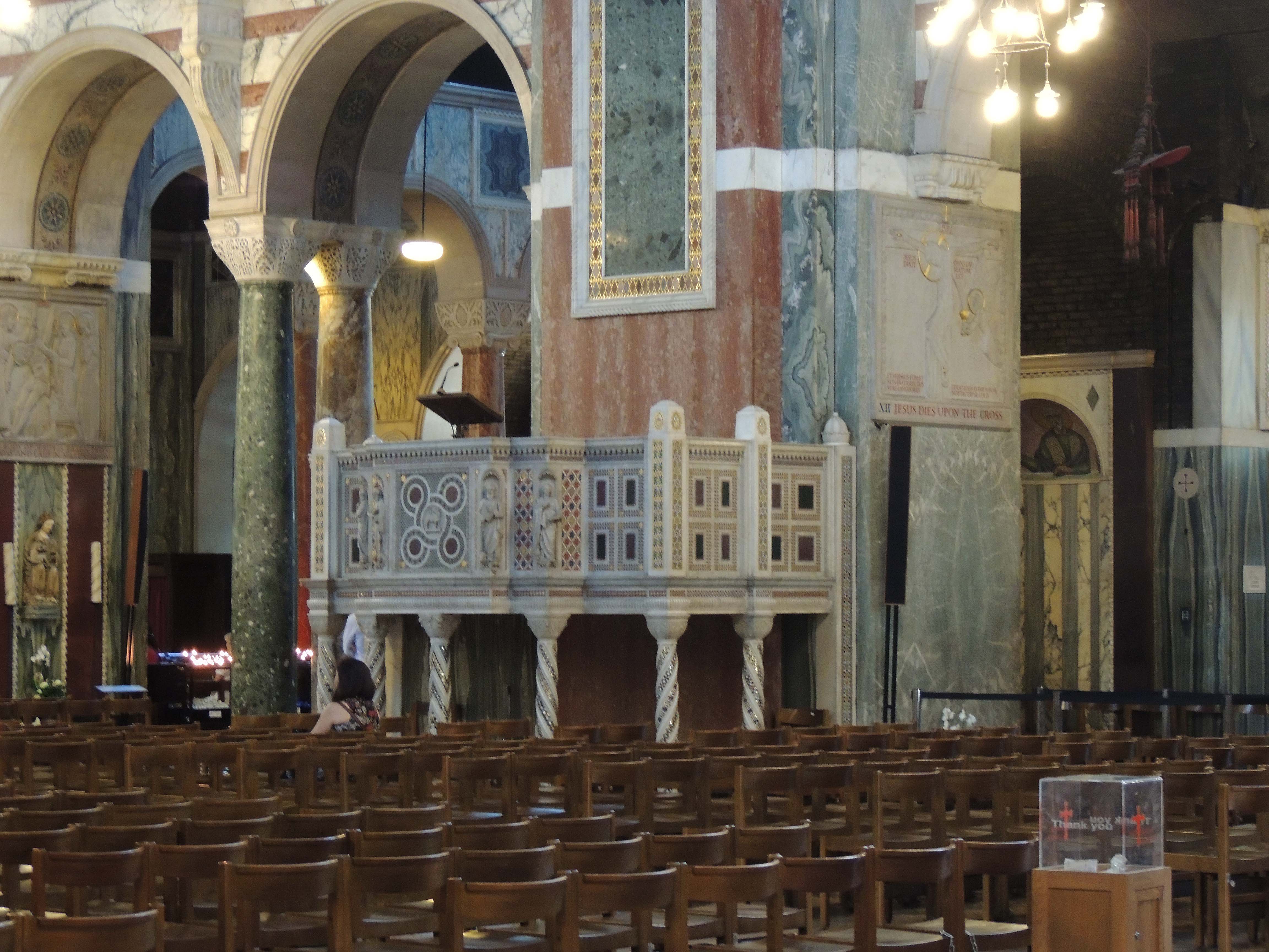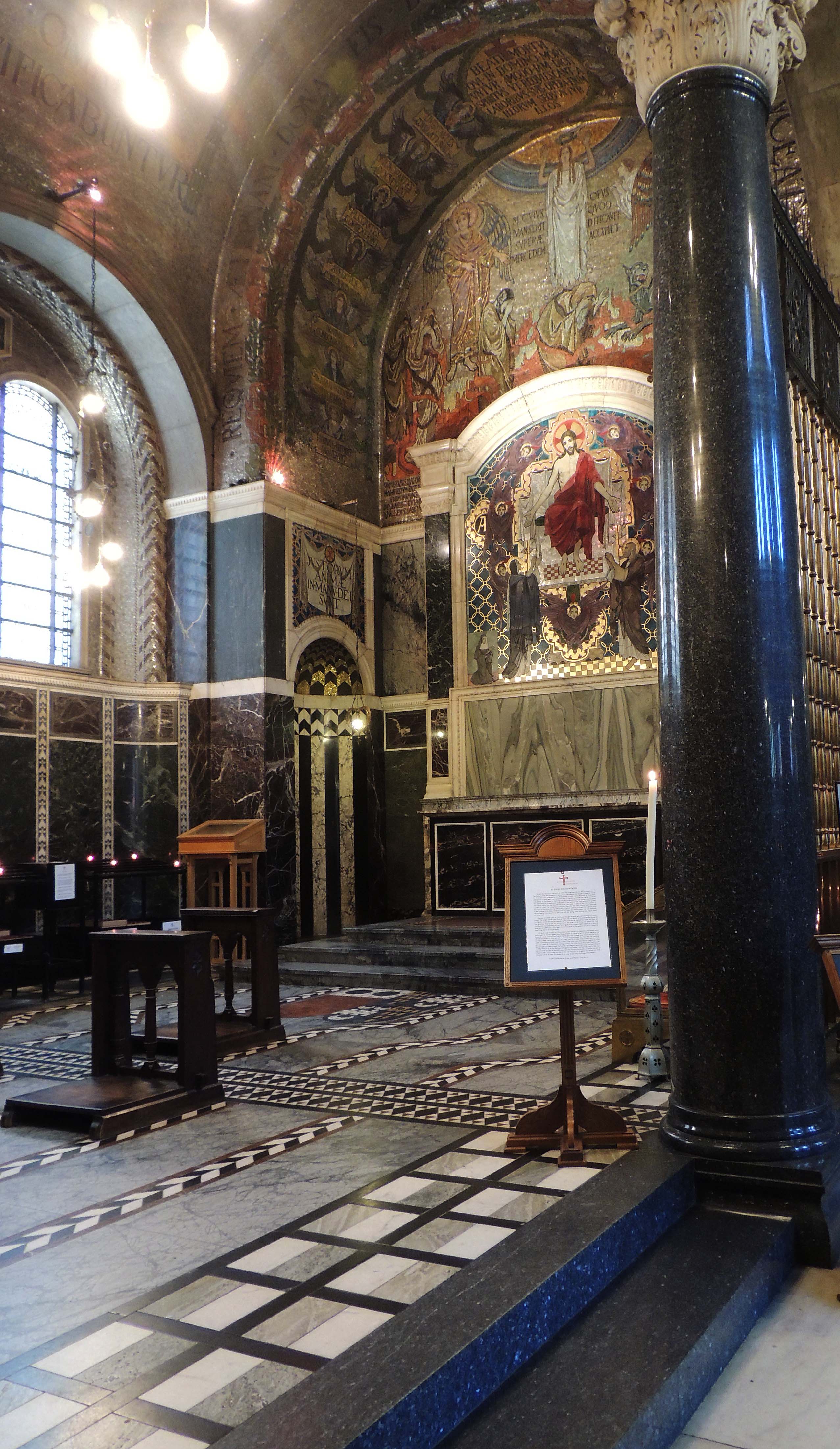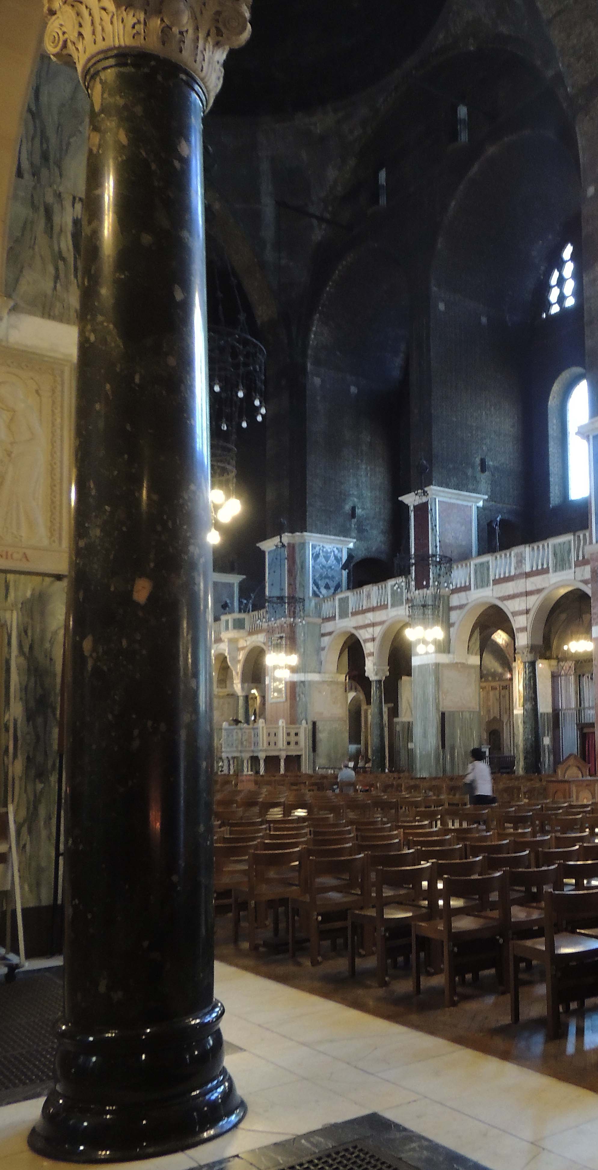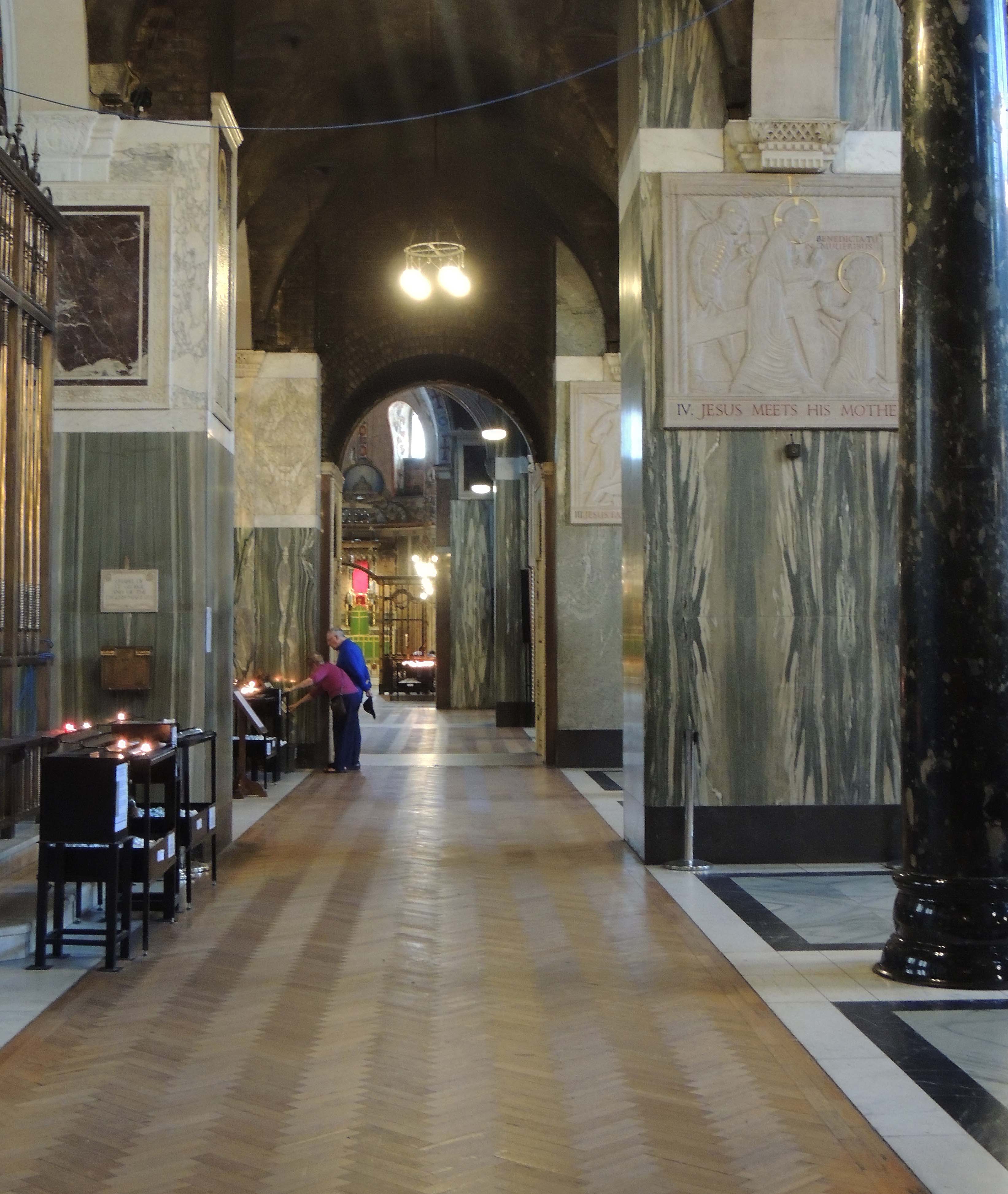 If I were asked to describe the interior of Westminster Cathedral I would probably come up with something like ‘Simple but ornate’. The simple use of plain blocks of marble create the most ornate effect. Hope the pictures portray it better than I can describe it!