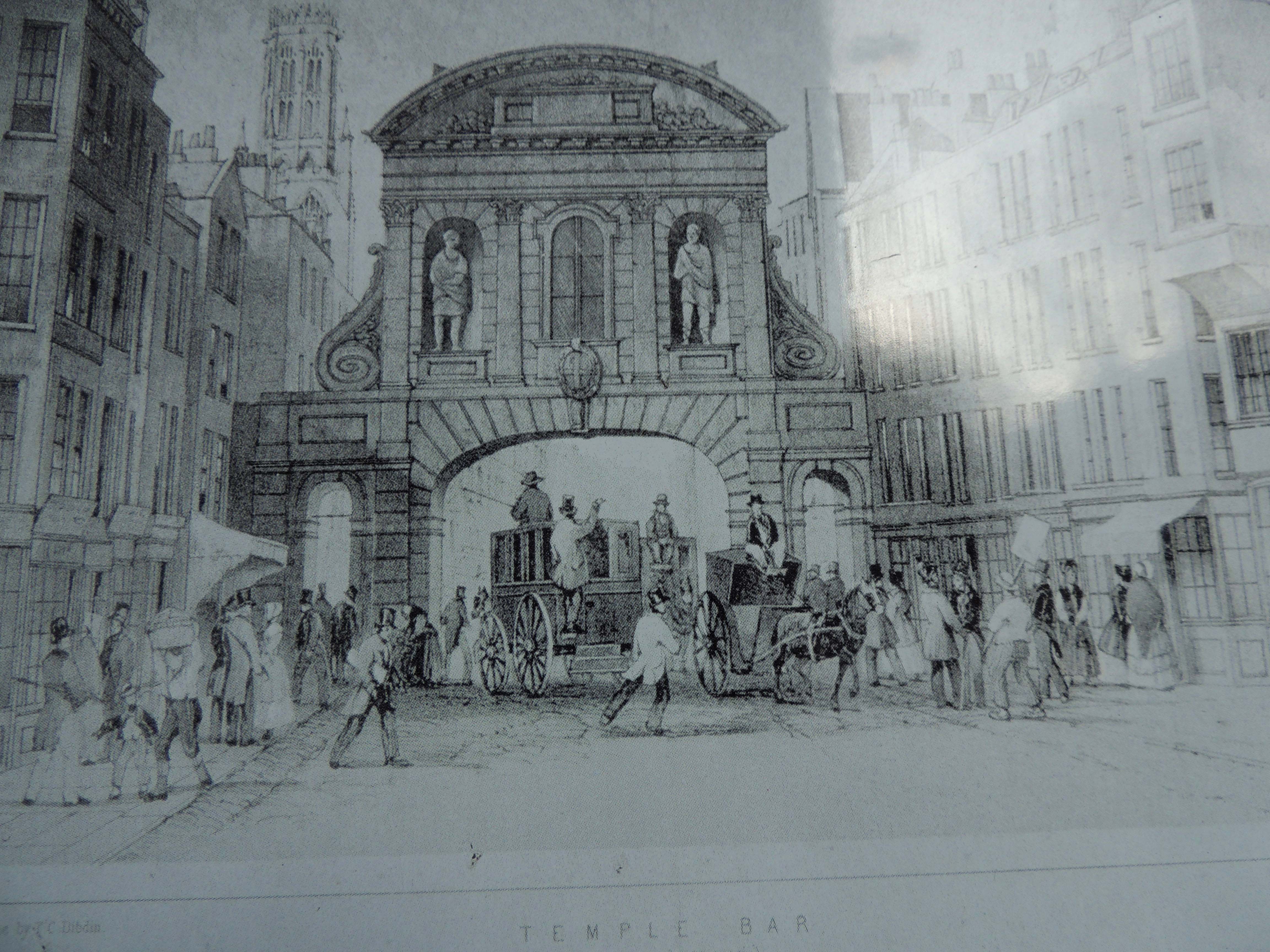The history of Temple Bar dates back to around 1290 when the City of London sought to regulate trade into the city area. It established a number of entrance points around the periphery of the city and erected barriers to control access. One of these was at the junction of modern day Fleet St and Strand at the boundary between the City of London and the City of Westminster. It is likely that in its earliest form this just consisted of posts and a chain. By 1350 this had been replaced by a wooden archway which also housed a prison above the arch.
