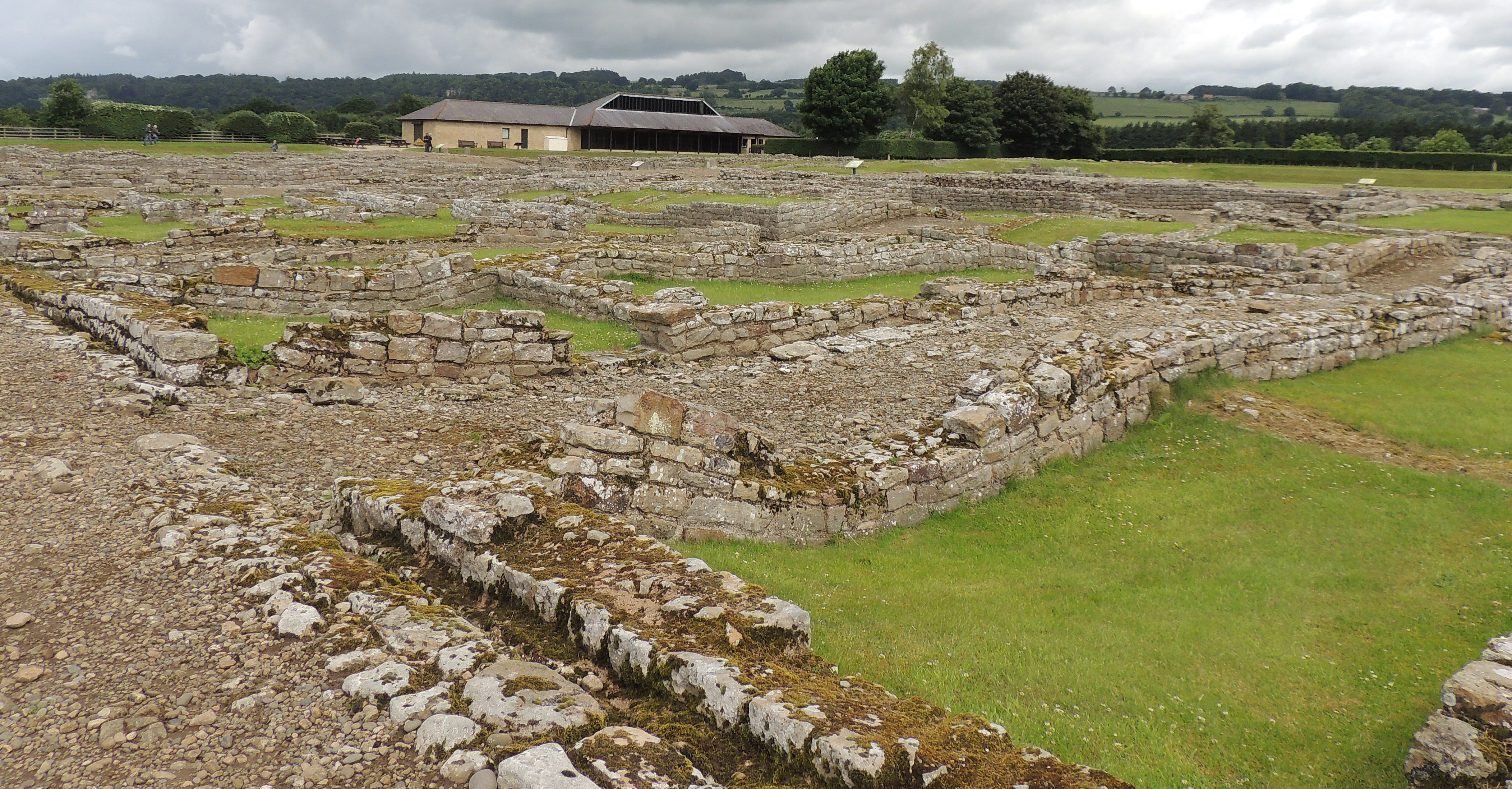 Corbridge is a small town, 25 miles inland from the North Sea along the valley of the River Tyne. To the west of the modern town is the site of Roman Corbridge, 2 miles south of Hadrian’s Wall. The impressive remains that are on display are only the central area of the settlement consisting of the military sector, but aerial photography has shown a much more extensive settlement surrounding the base. It’s location was at the junction of Stanegate (the Roman road running from Newcastle to Carlisle which had formed the definition of the northern border of Roman occupation prior to the completion of Hadrian’s Wall) and Dere Street (running north from York).