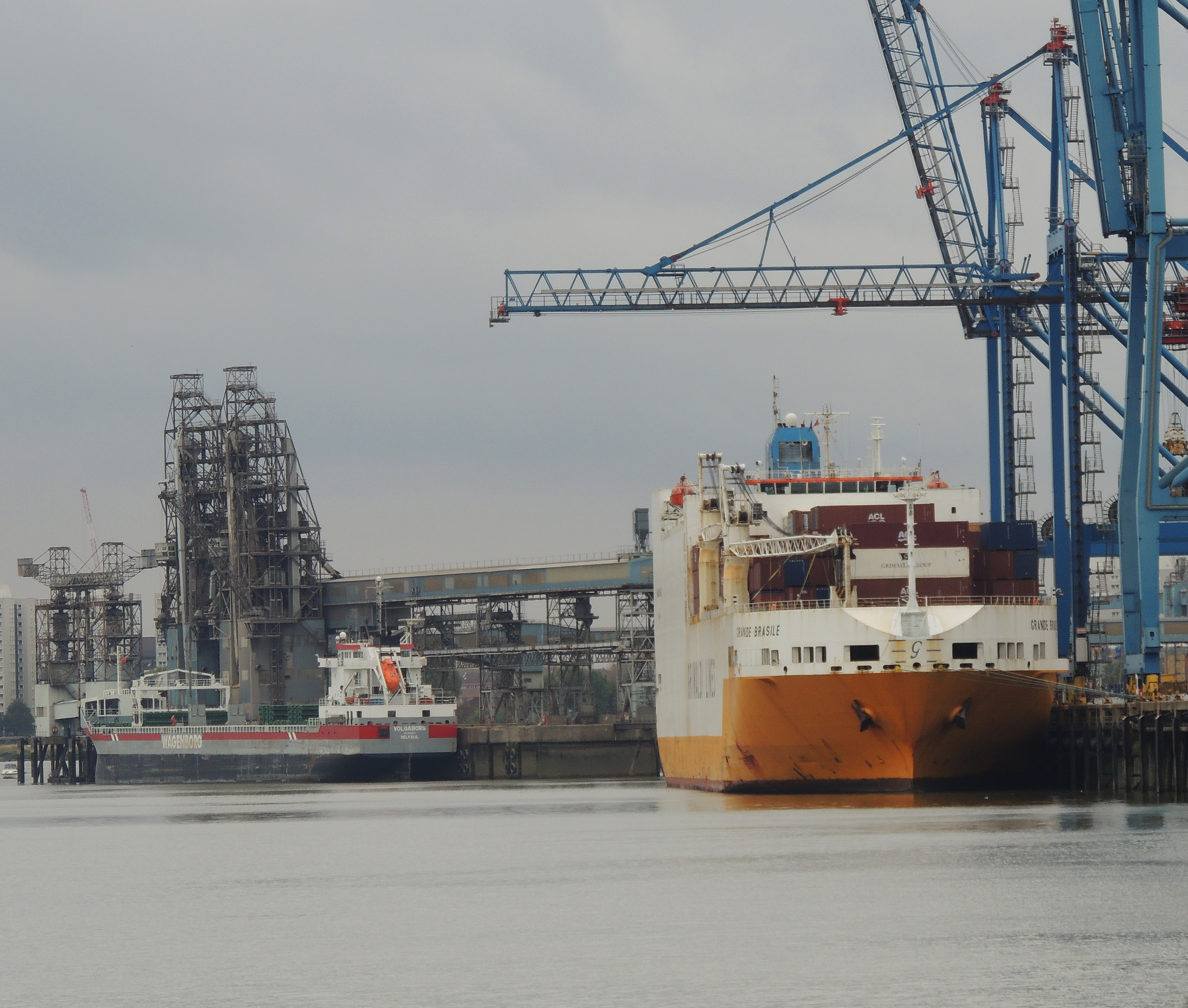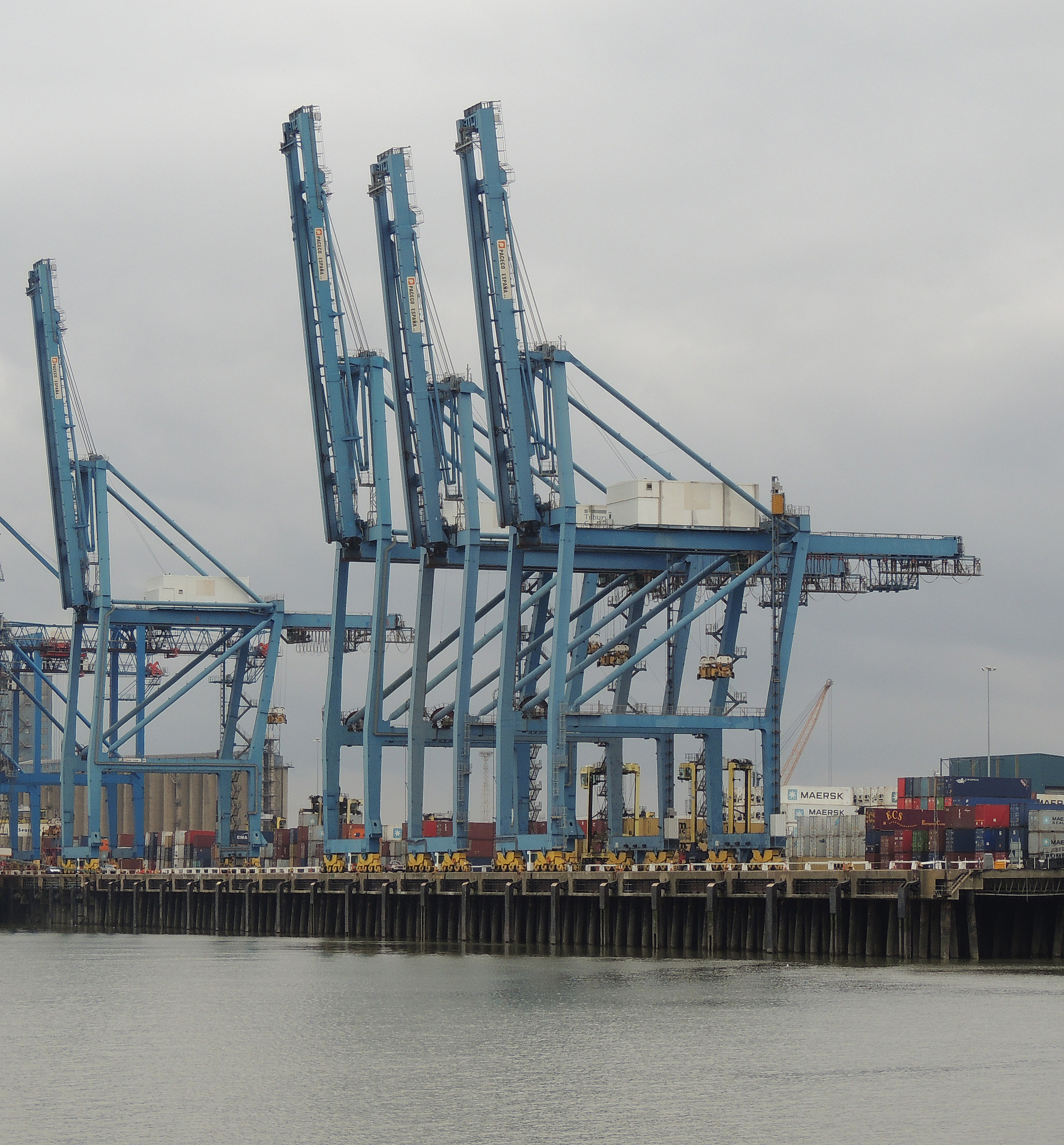 Leaving Gravesend the PS Waverley makes it’s way up river towards London. The first place we pass is Tilbury Docks, on the north bank, now the principal port for London. It was opened in 1886 when there was a need for a deep-water access port nearer to the river mouth than the existing docks in East and South London. During the 20th century it continued to expand. In 1967 a container port was added and in 1978 a new deep-water berth was added. It now covers 850 acres and is an import station for paper and wood, grain, construction and building materials. It addition to standard docking and containers, it also has a facility for handling roll-on, roll-off cargoes for onward shipment by road.