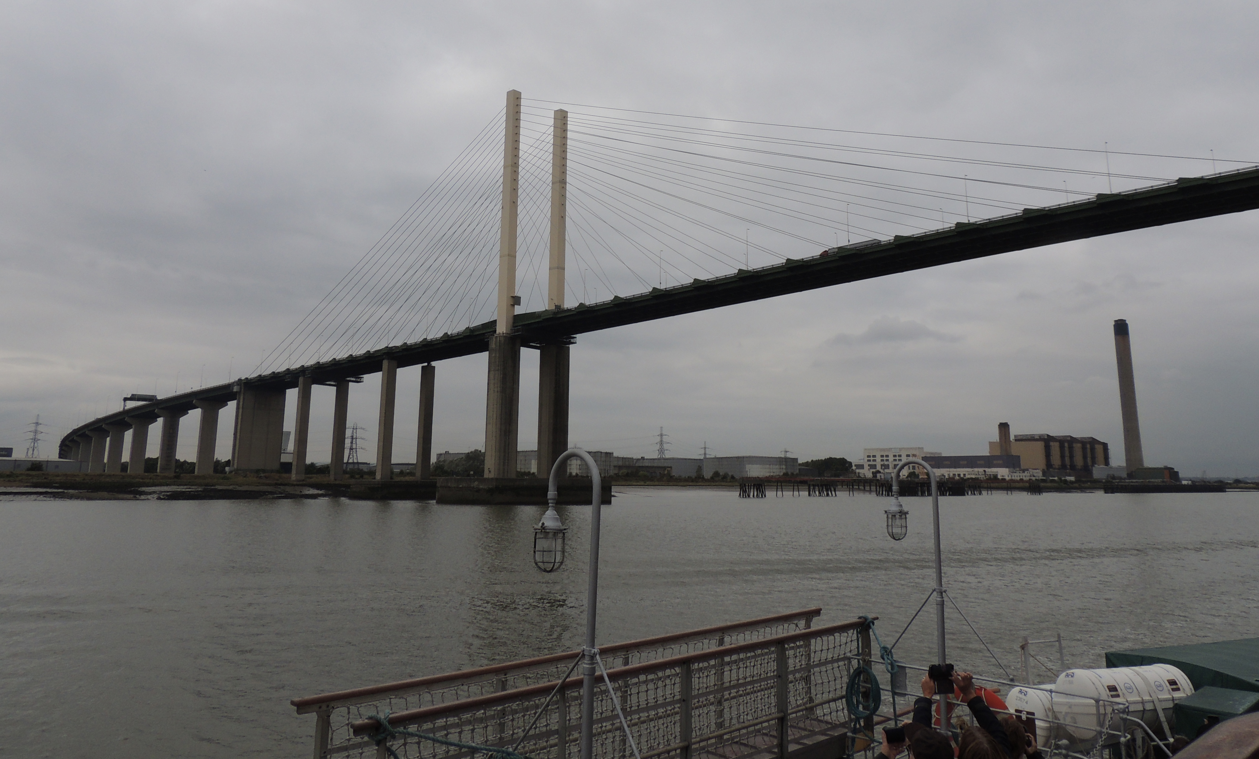 As we look up river we can see in the distance the Dartford Bridge which carries part of the London Orbital motorway