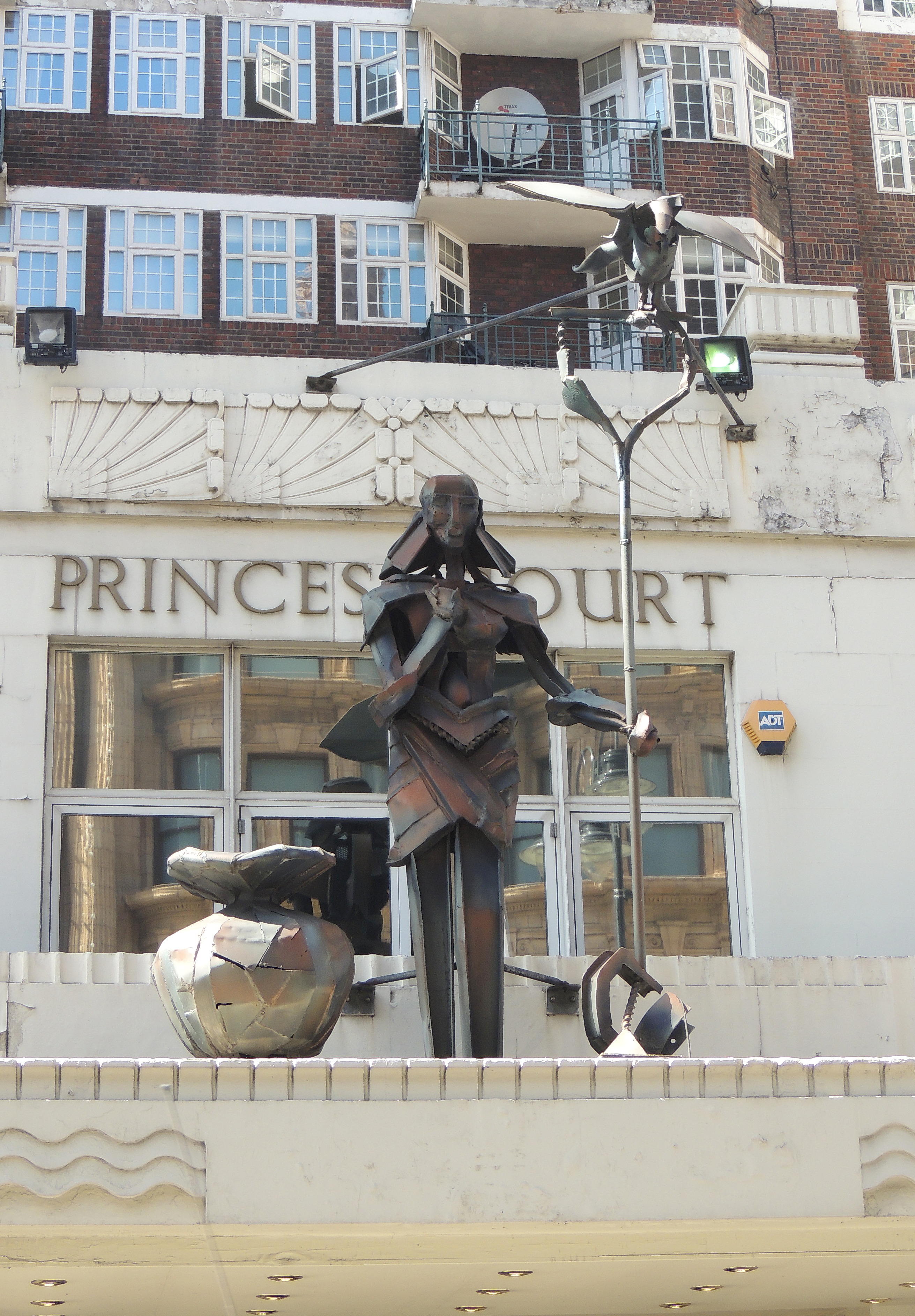 1. The picture appears in a number of blogs relating to the architecture of the building, but no further information is given. One interesting thing I did find were some original drawings of Princes Court and there is no statue above the entrance, so it seems it was not part of the architects original plan. My best bet would be it’s an ancient prince (link with building name) which been embellished by some art deco motifs reflecting the style of the building.