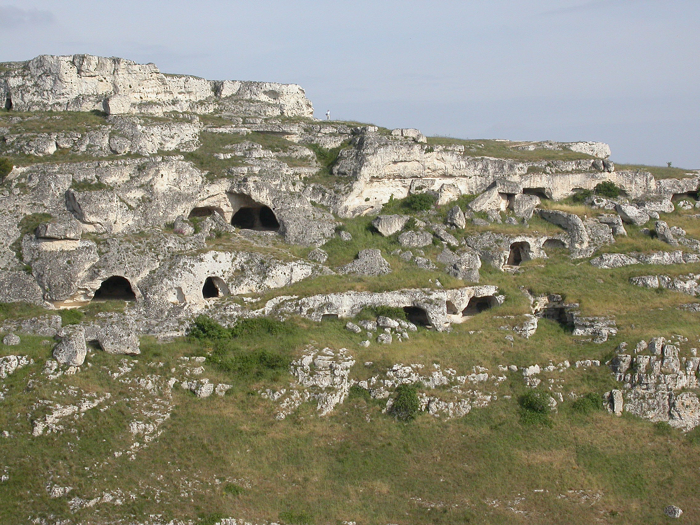 When I was there, in 1997, we were having a drink in a cafe after visiting some of the cave houses, which had been renovated and opened for tourists to see. The lady in the cafe heard what we were talking about and disappeared. A few moments later she re-appeared with her husband, who spoke no English, but pointed to himself and said proudly ‘Troglodyte’ which means cave dweller. It turned out he was from one of the last families to be moved out of the cave houses and, perhaps surprisingly, we learned that many families were very reluctant to leave their homes in the Sassi to move to new flats in the modern part of the town.