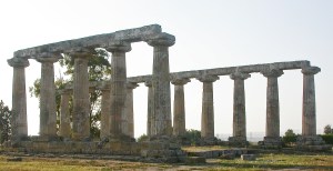 Today the outstanding remains at the site are those of the Temple of Hera, dating back to the 6th century BCE, part of a “countryside sanctuary”.