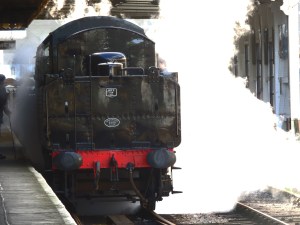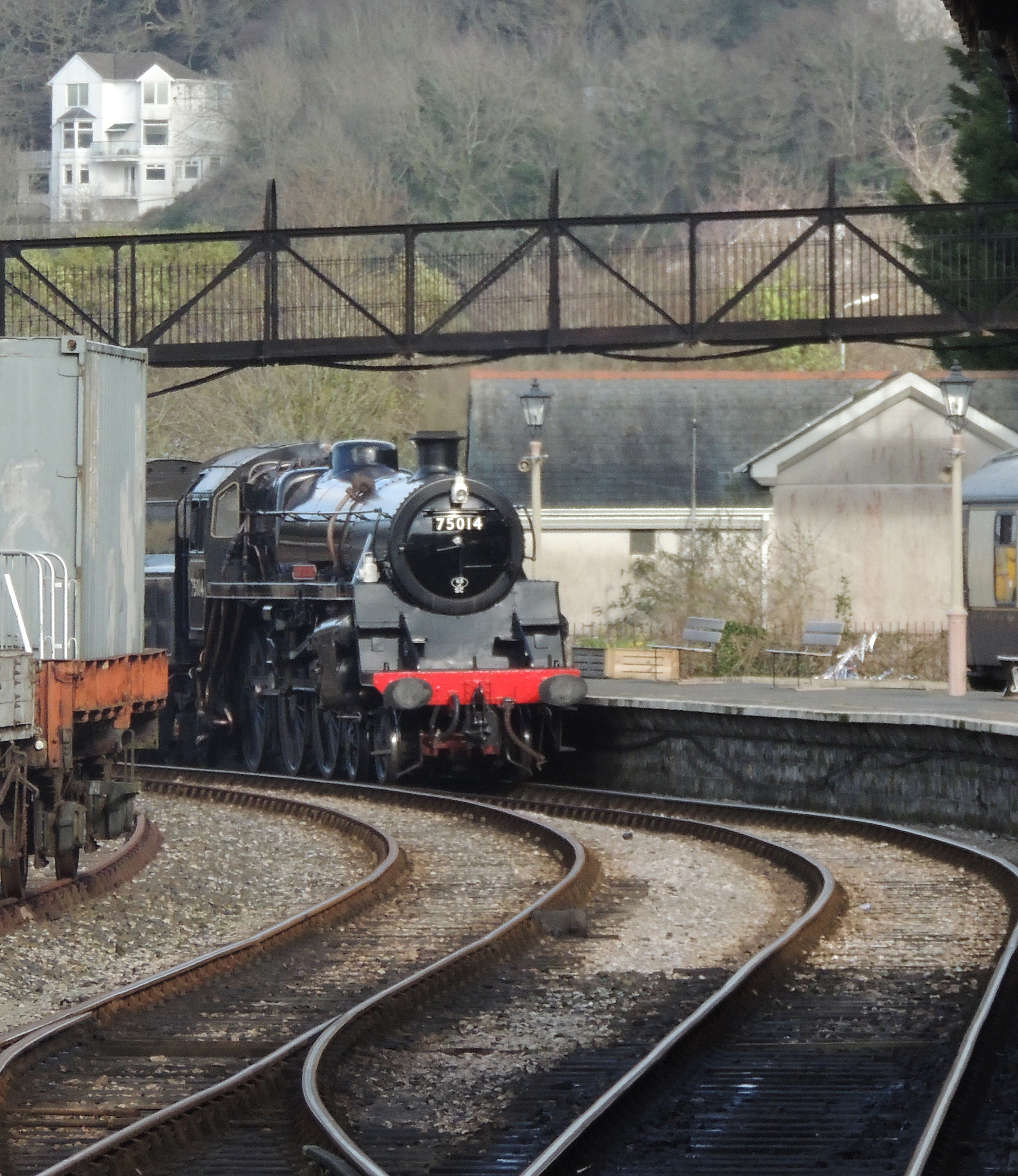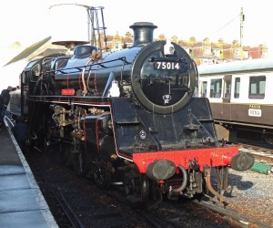 75014 Braveheart is a BR Standard 4 built at Swindon in 1951. It worked in the Midlands and was withdrawn in 1966 and sent to Barry scrapyard. It was purchased in 1981 and transferred to the North York Moors Railway where it returned to steam in 1994. In 2002 it was sold to the Dartmouth Steam Railway where it returned to steam in 2016.