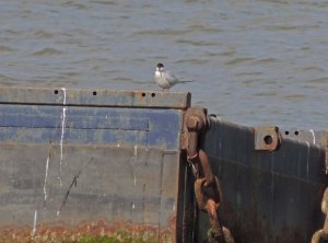 On leaving the reserve we walked towards the O2 dome and we found two Common Terns sitting on a barge in the middle of the river, along with a selection of Gulls.